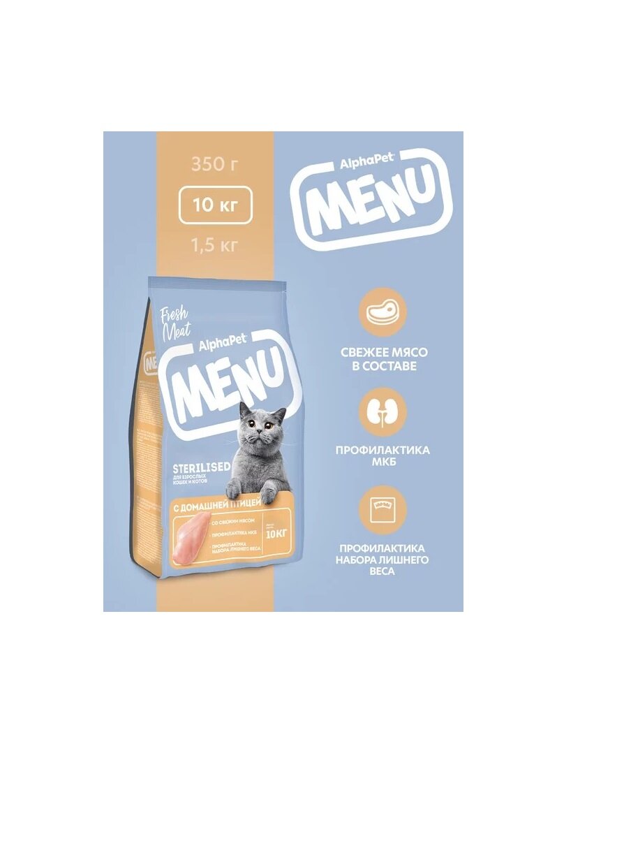 AlphaPet MENU сухой корм стерилизованным кошкам с домашней Птицей 10кг