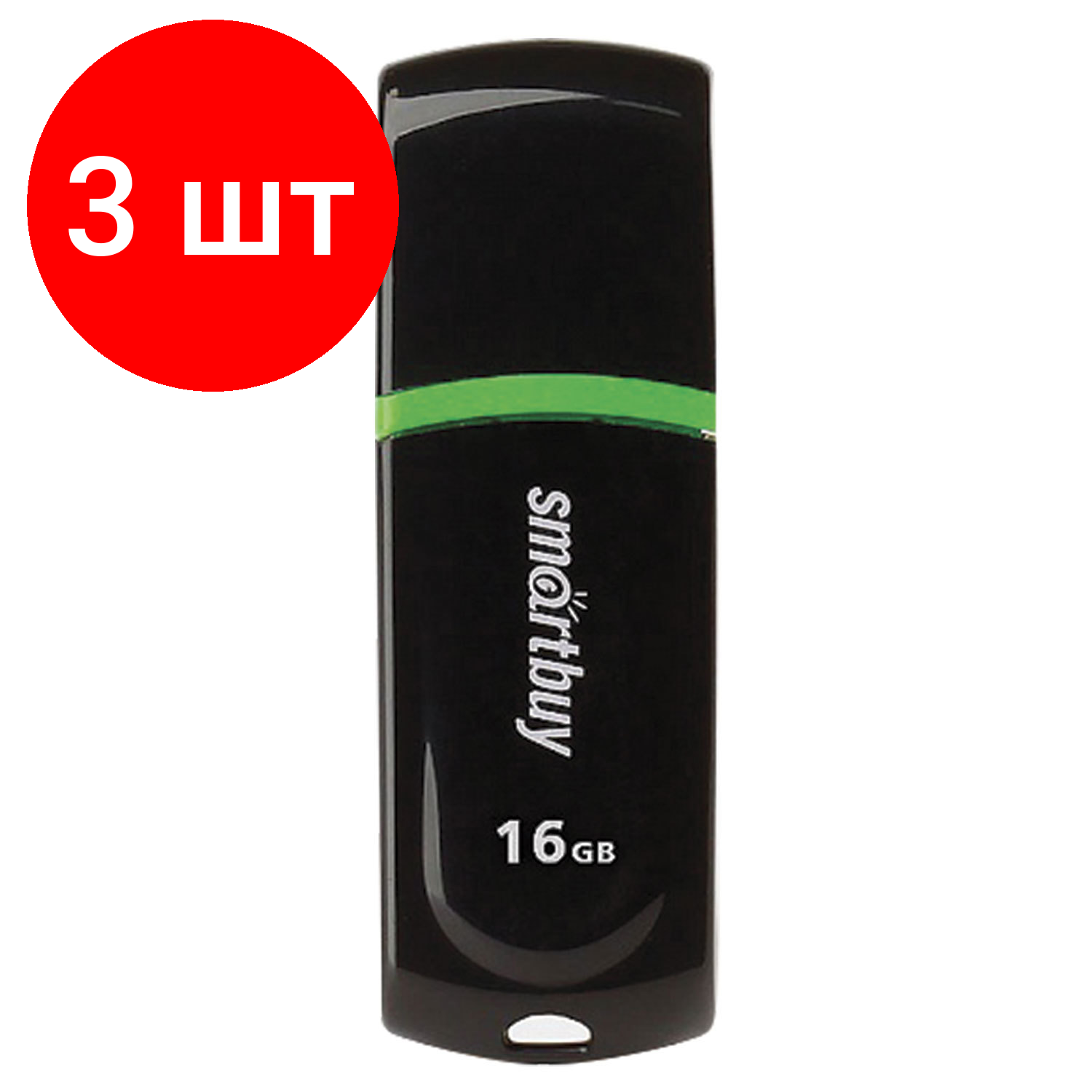 Купить 3 шт. Флеш-диск 16 GB, SMARTBUY Paean, USB 2.0, черный, SB16GBPN-K