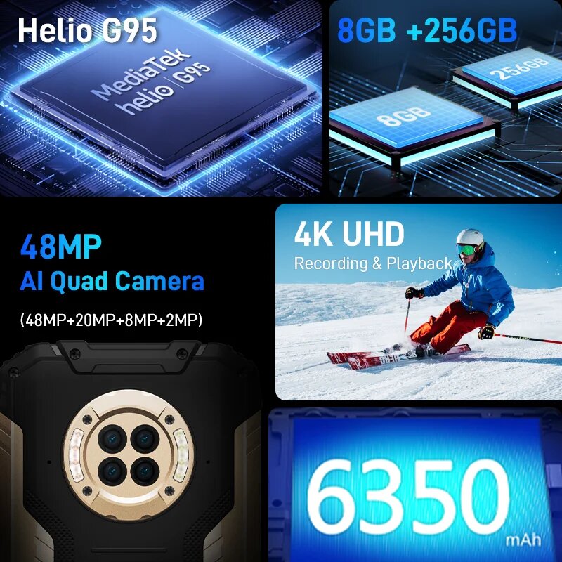 Купить DOOGEE S96GT 8 ГБ 256 ГБ Прочное оборудование 32 Мп фронтальная камера 24 Вт быстрая зарядка 6350 мАч Android 12 NFC, Global Version, Оранжевый, 8ГБ, 256ГБ, global, новый