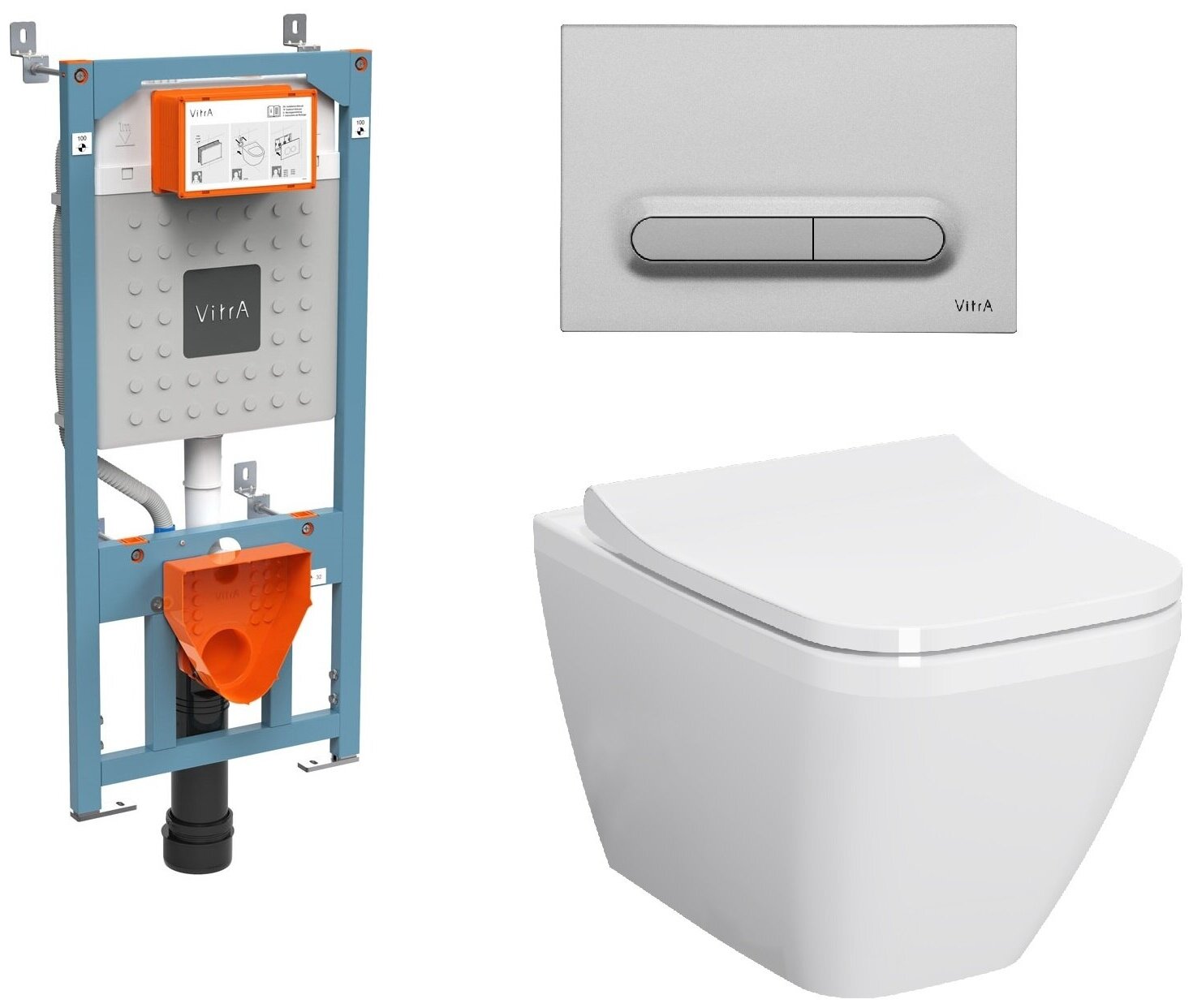 VitrA Комплект VitrA Integra Square 9856B003-7206 подвесной унитаз + инсталляция + кнопка
