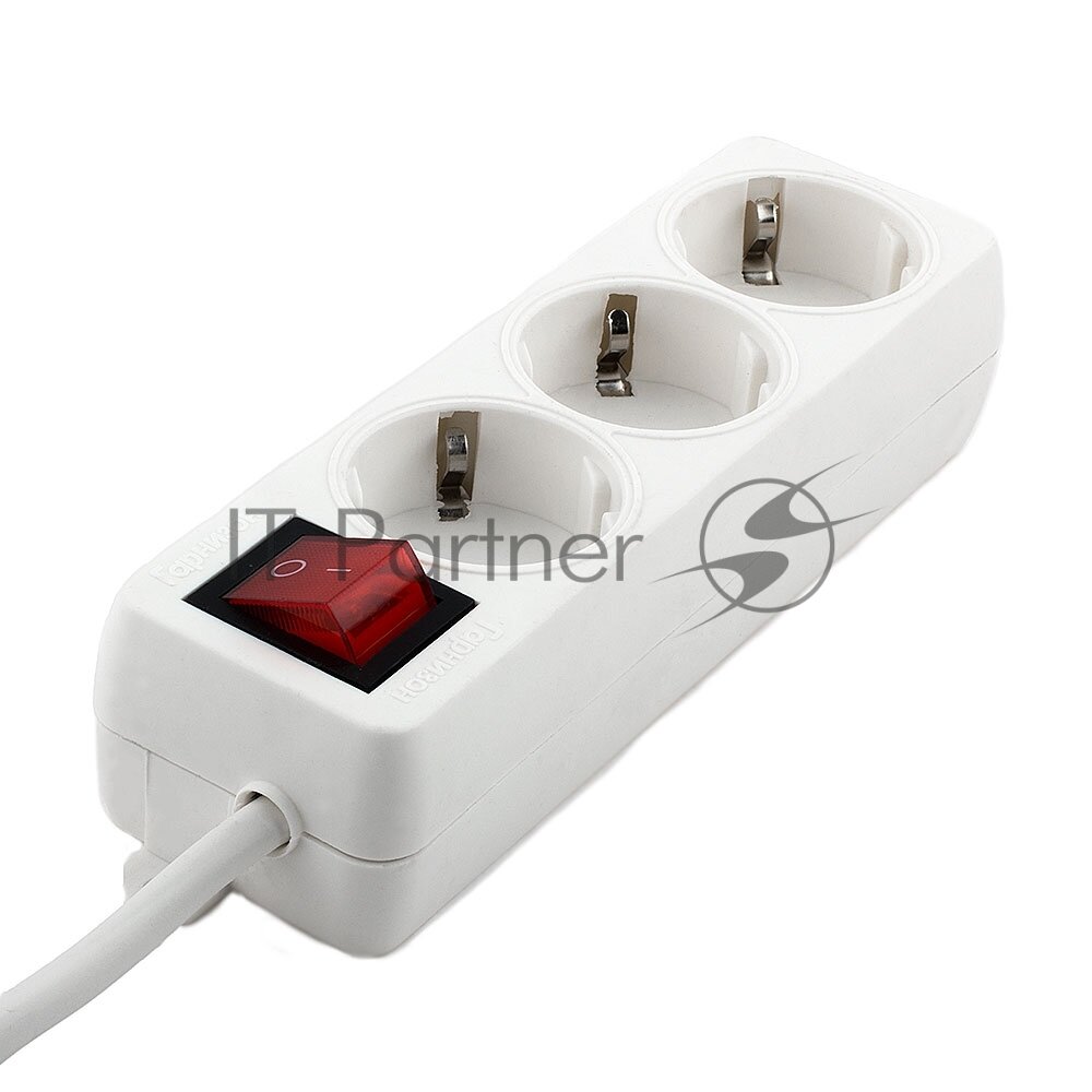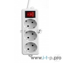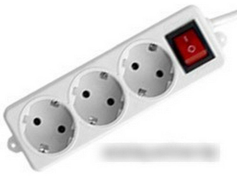 Удлинитель Гарнизон 3 евророзетки с выключателем и заземлением, длина 2м. ELB-G3-W-2