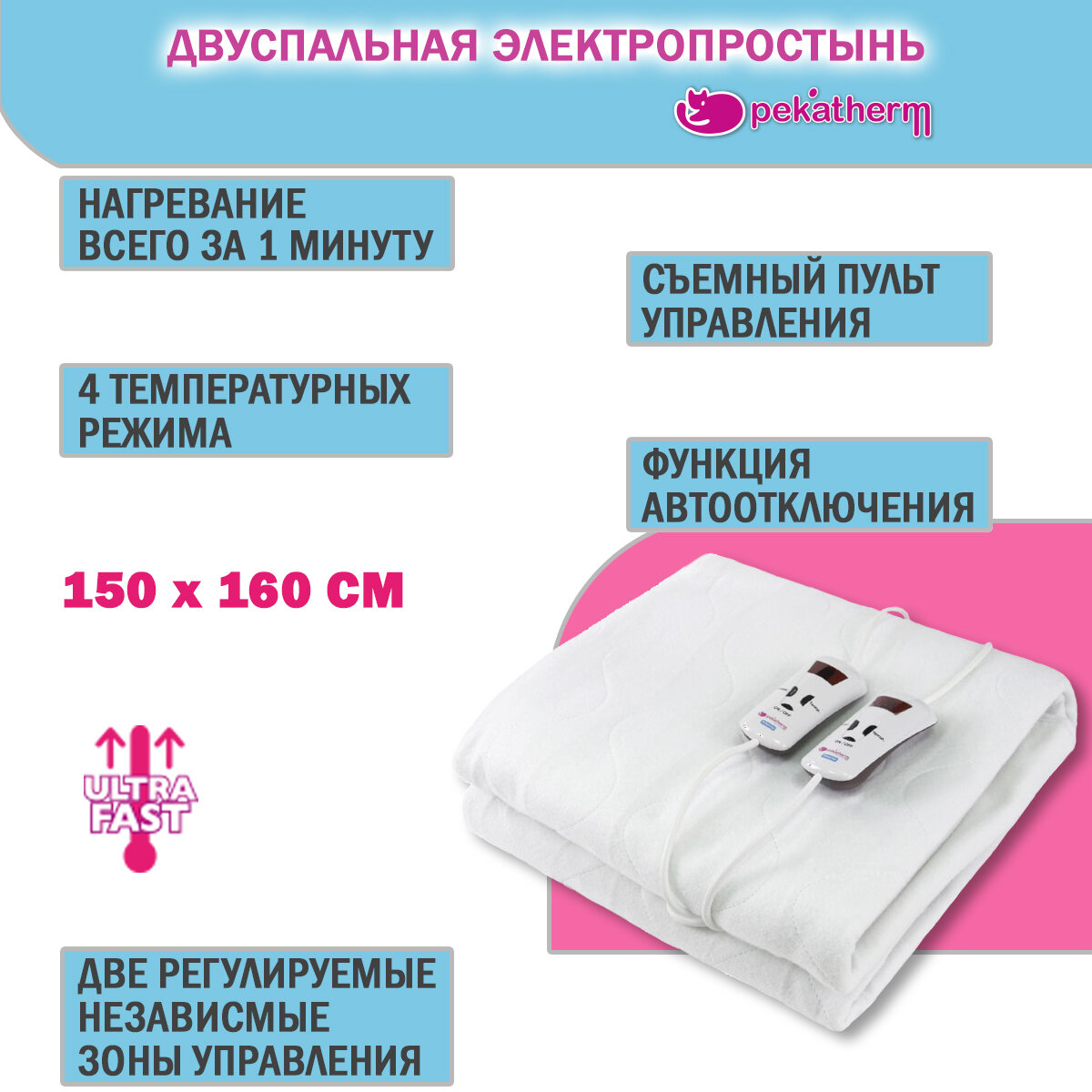 Купить Электропростынь Pekatherm UP210DF с разъемом 150х160 см, двуспальная