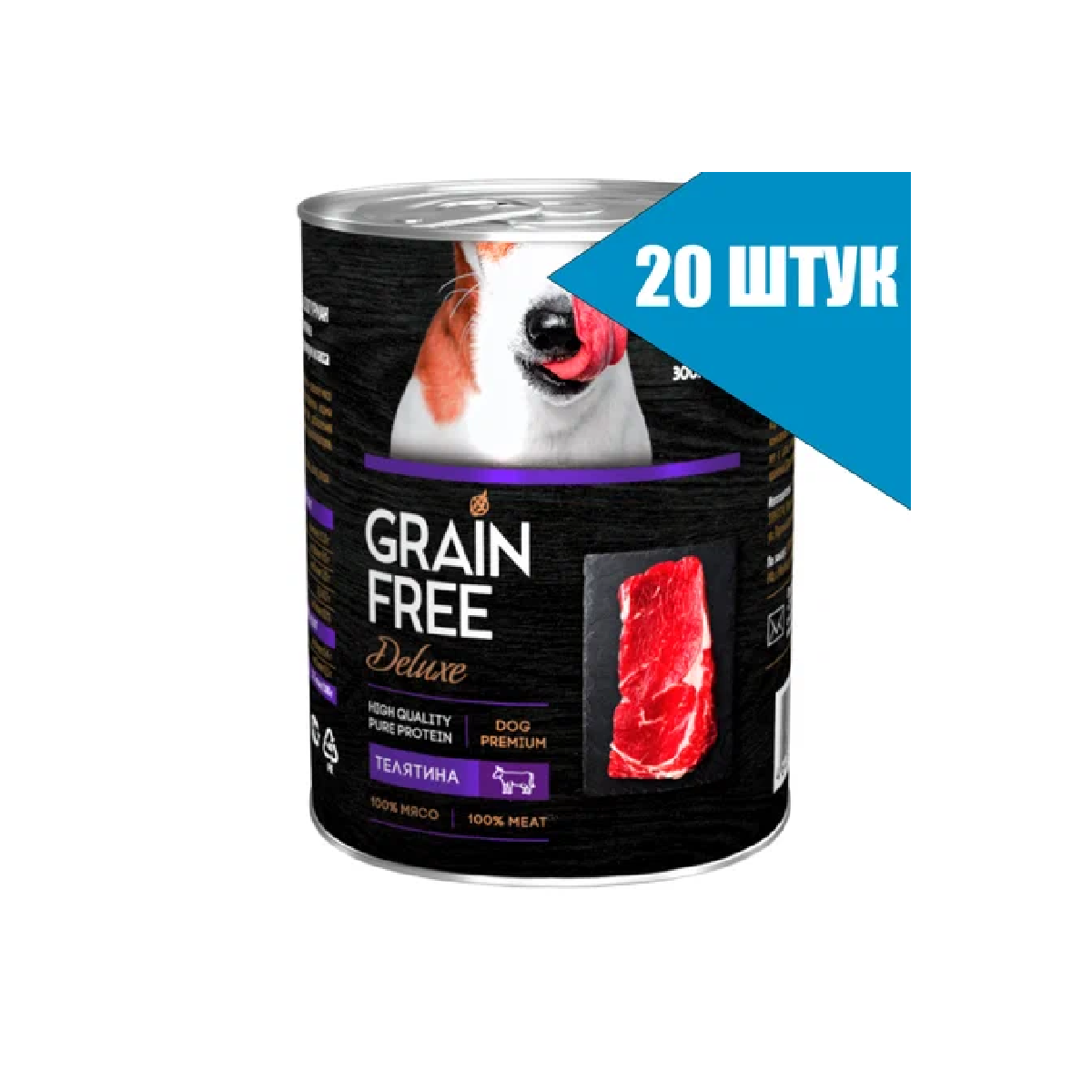 Мясной рацион Grain Free, консервы для собак, Телятина, 350 г.