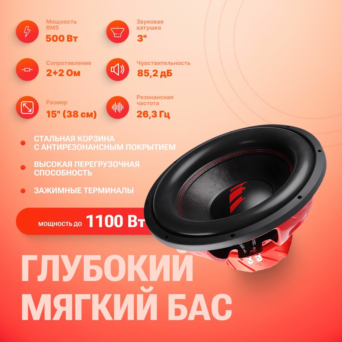 СохранитьСабвуфер URAL сабвуфер ТТ 15 39 см, 1100 Вт, черный/красный интересное: