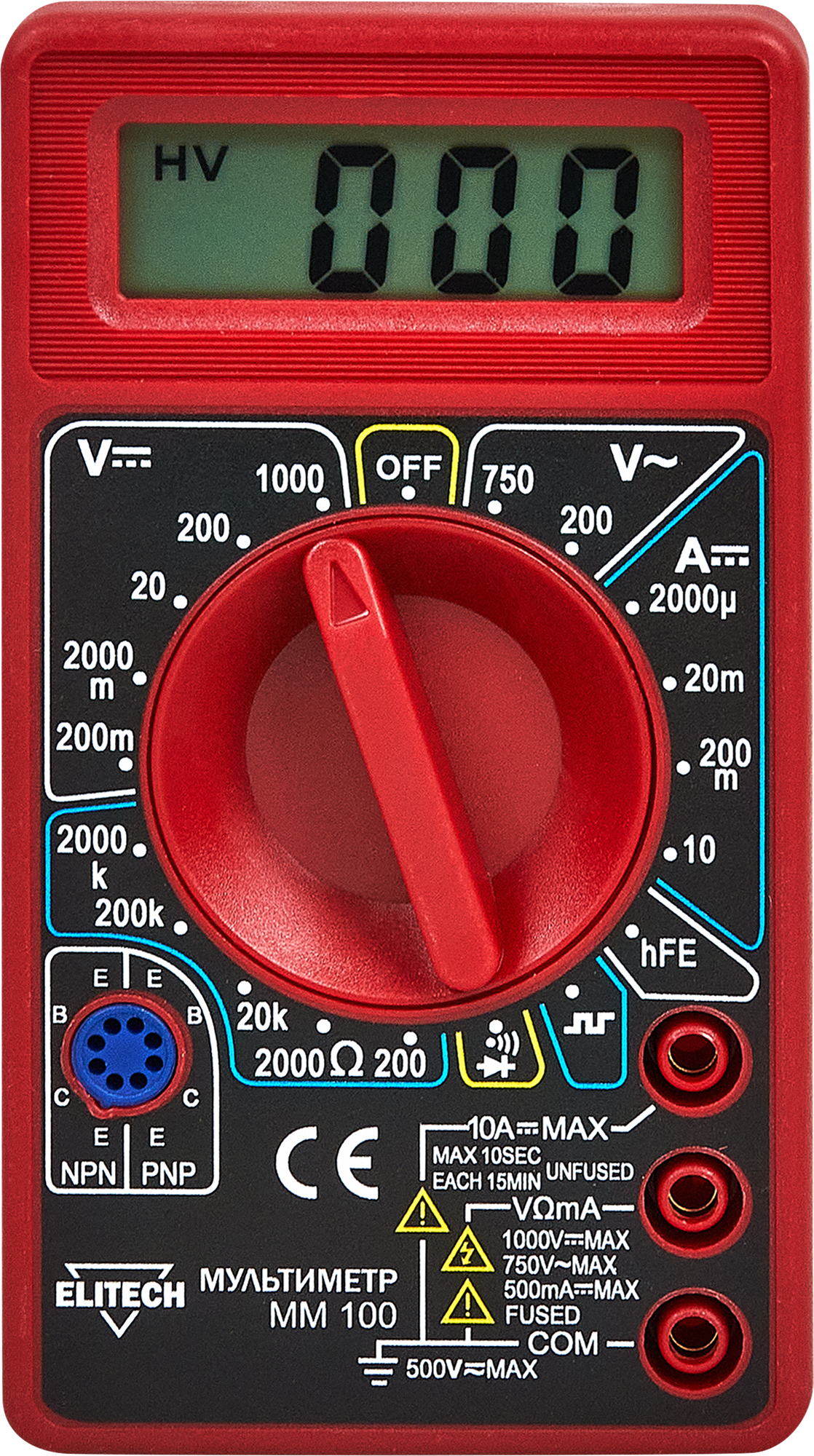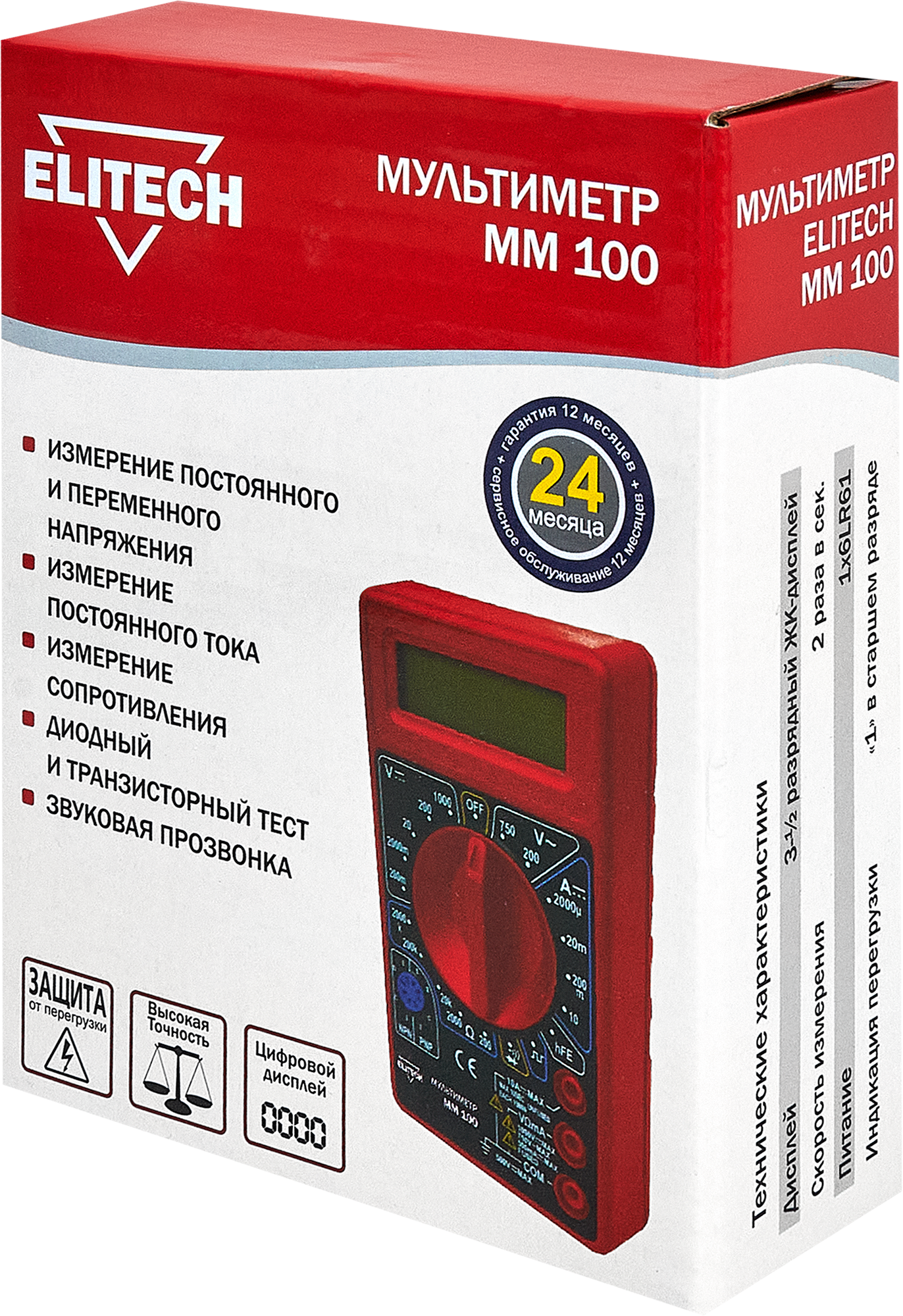 Мультиметр ELITECH ММ 100 пост.1000в/перем.750в жкдисплей кол-во измер.2/1сек индик.перегрузки кор