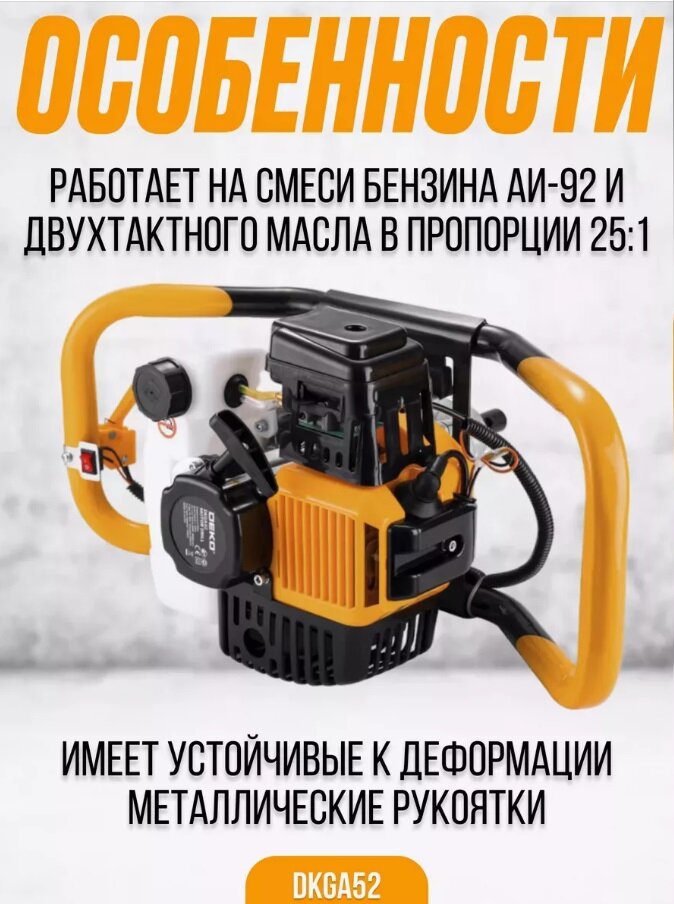 Мотобур Deko DKGA52 без шнека, 52 см3 (018-1112) желто-черный интересное: