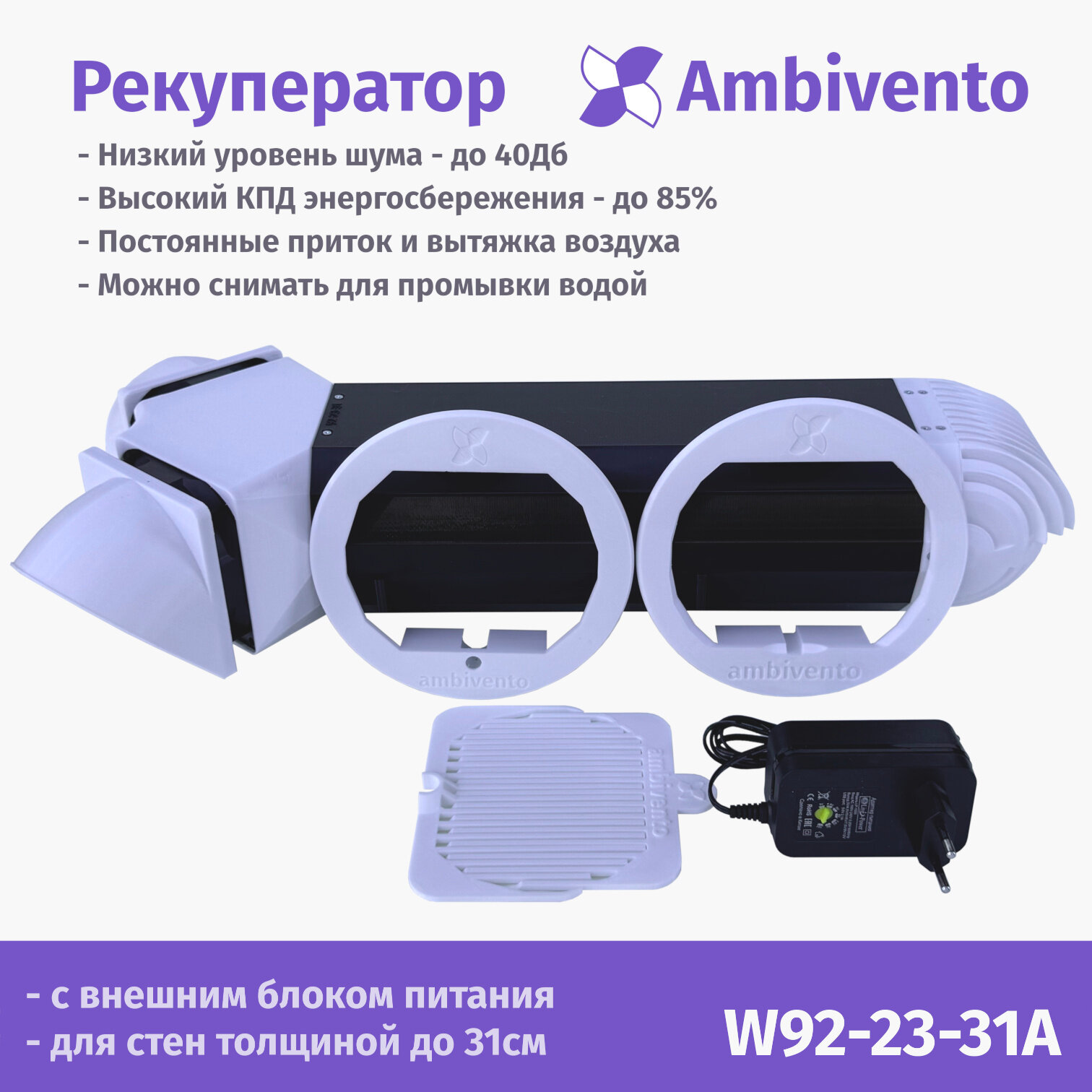 Ниже Вы можете прочитать отзывы на Съемный рекуператор воздуха Ambivento для стен 28-31см с внешним блоком питания, ознакомится с подробными характеристиками, посмотреть интересные обзоры и фотографии на Съемный рекуператор воздуха Ambivento для стен 28-31см с внешним блоком питания.