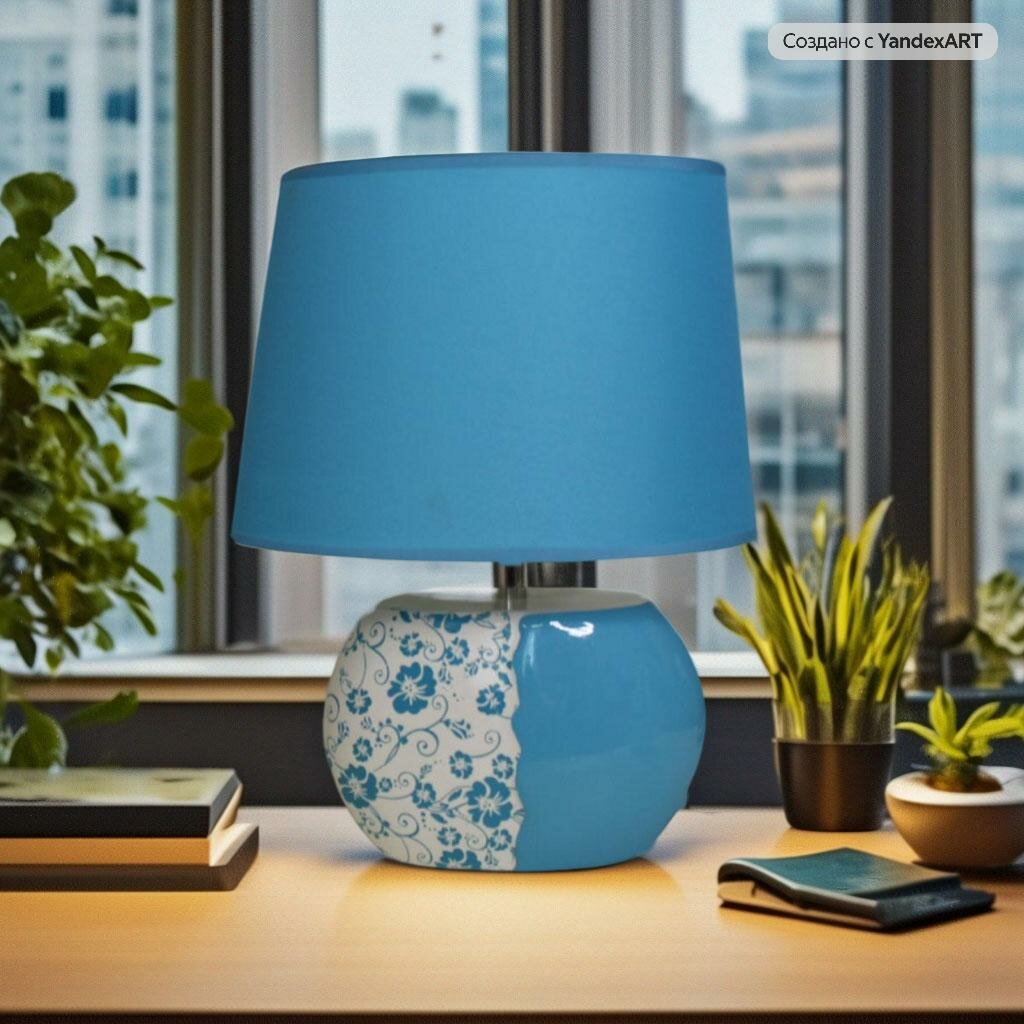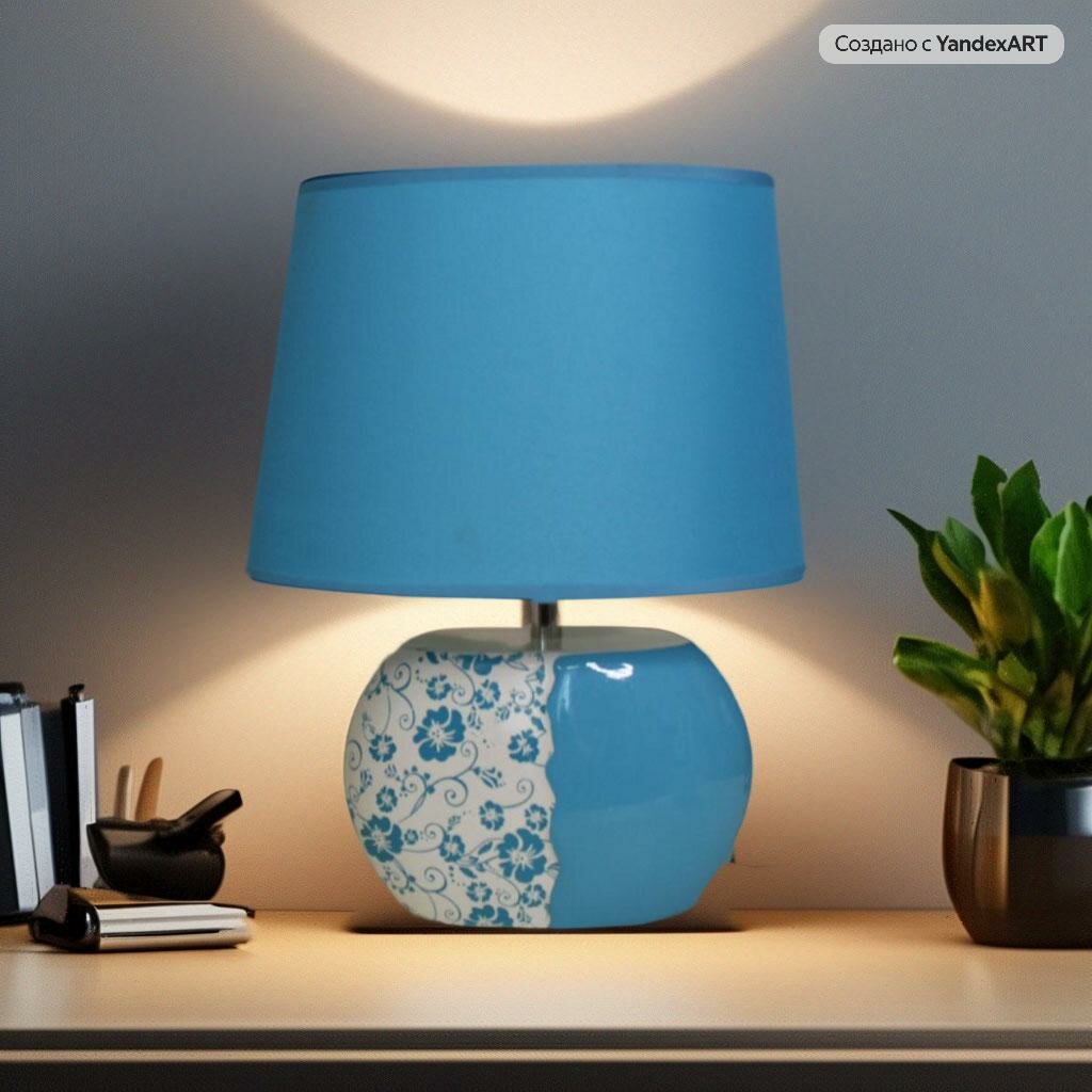 Настольная лампа 0436 BL бело-голубая, прикроватный светильник интересное: