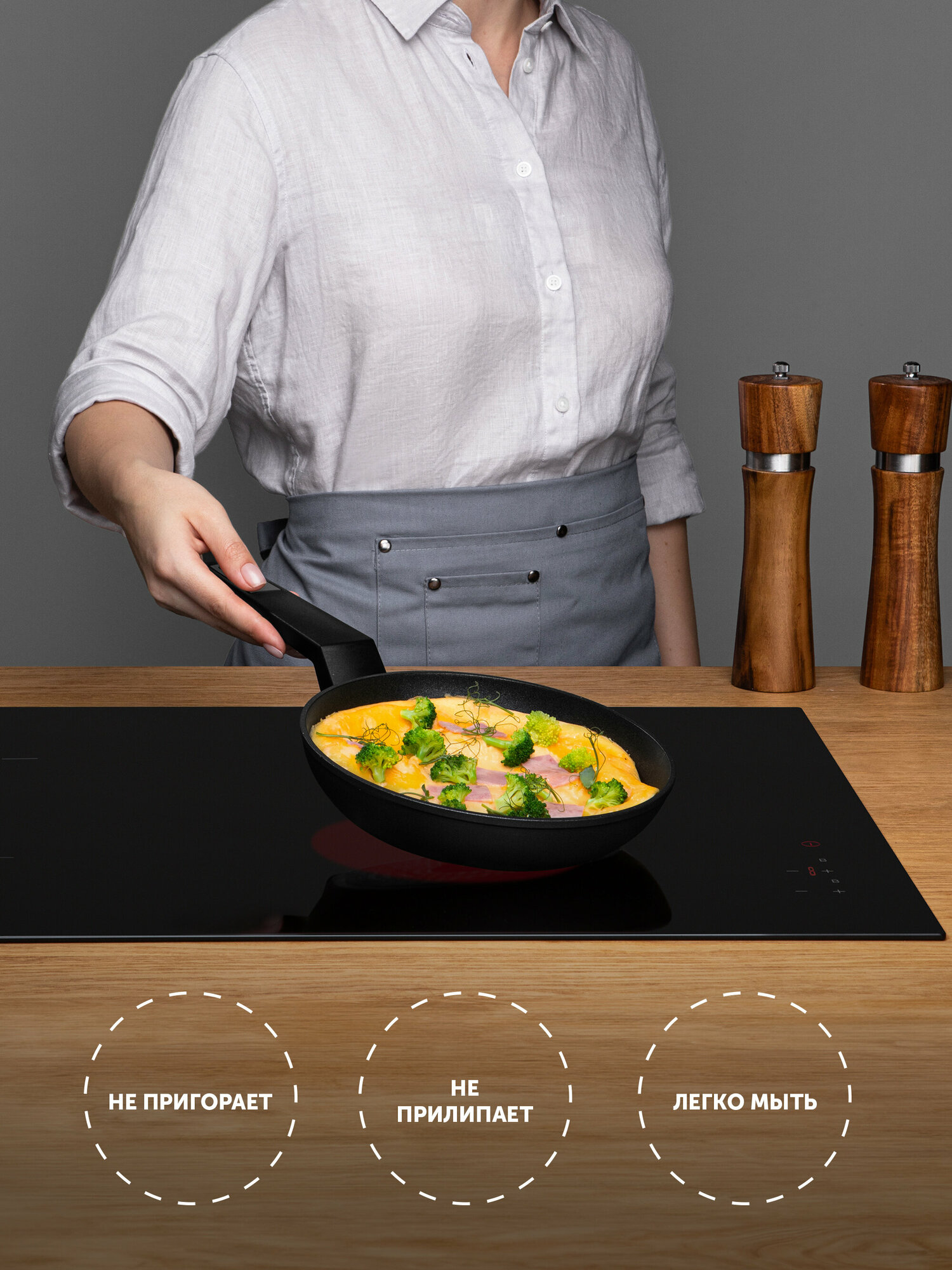 Сковорода Polaris Graphit-24F без крышки, с антипригарным покрытием для индукционной плиты 24 см см