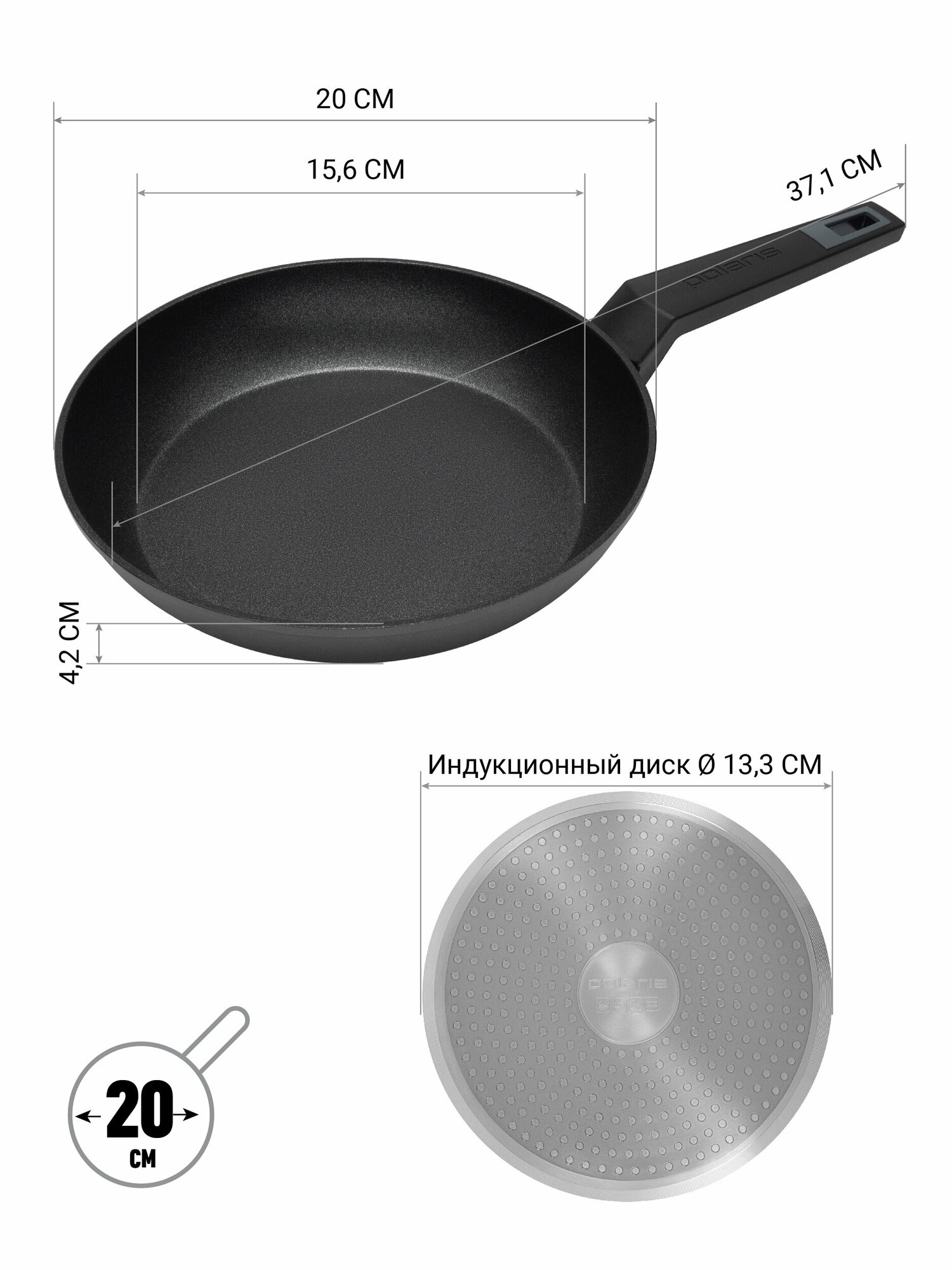 Сковорода Polaris Graphit-20F без крышки,с антипригарным покрытием для индукционной плиты 20 см см