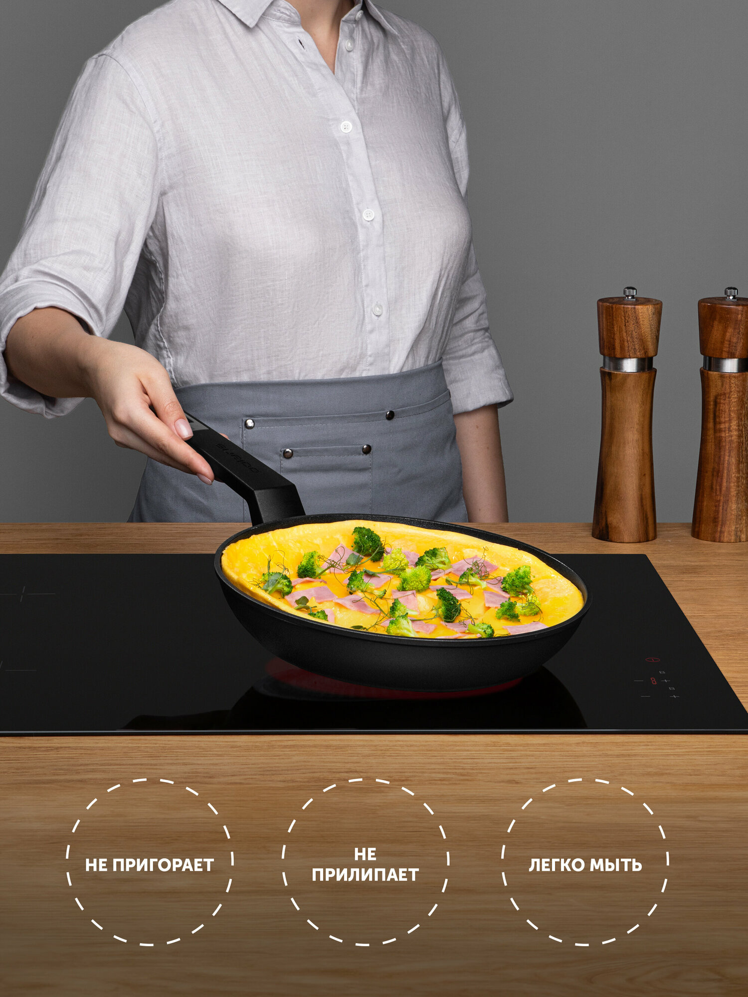 Сковорода Polaris Graphit-24F без крышки, с антипригарным покрытием для индукционной плиты 24 см см