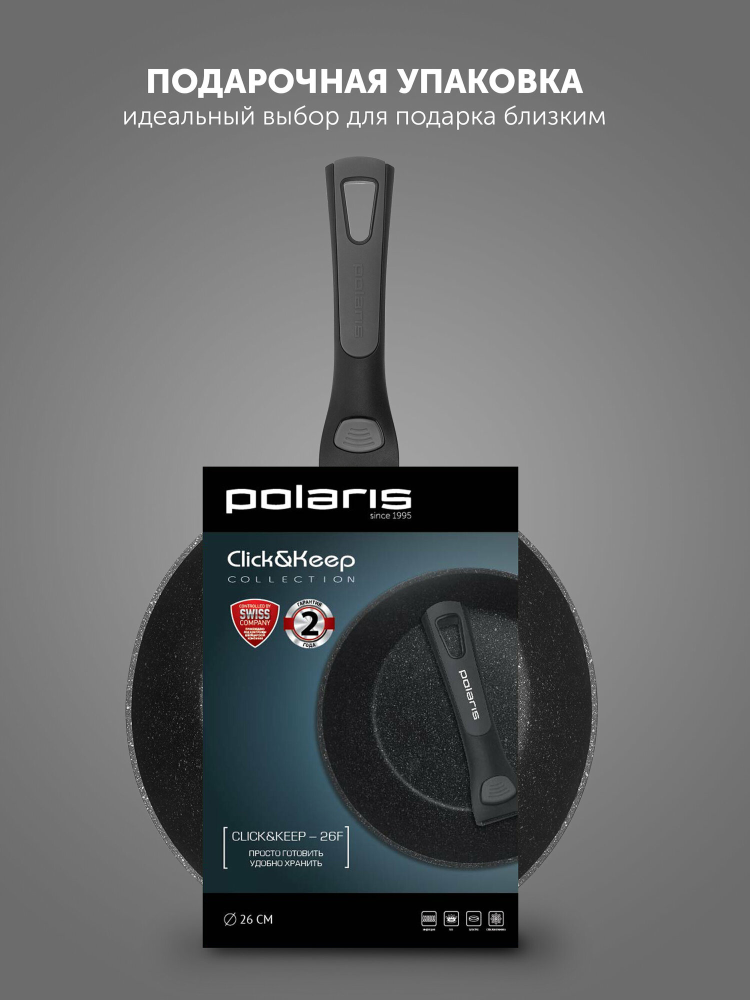 Сковорода Polaris Click&Keep 26F, 26см, съемная ручка, без крышки, черный [018801]