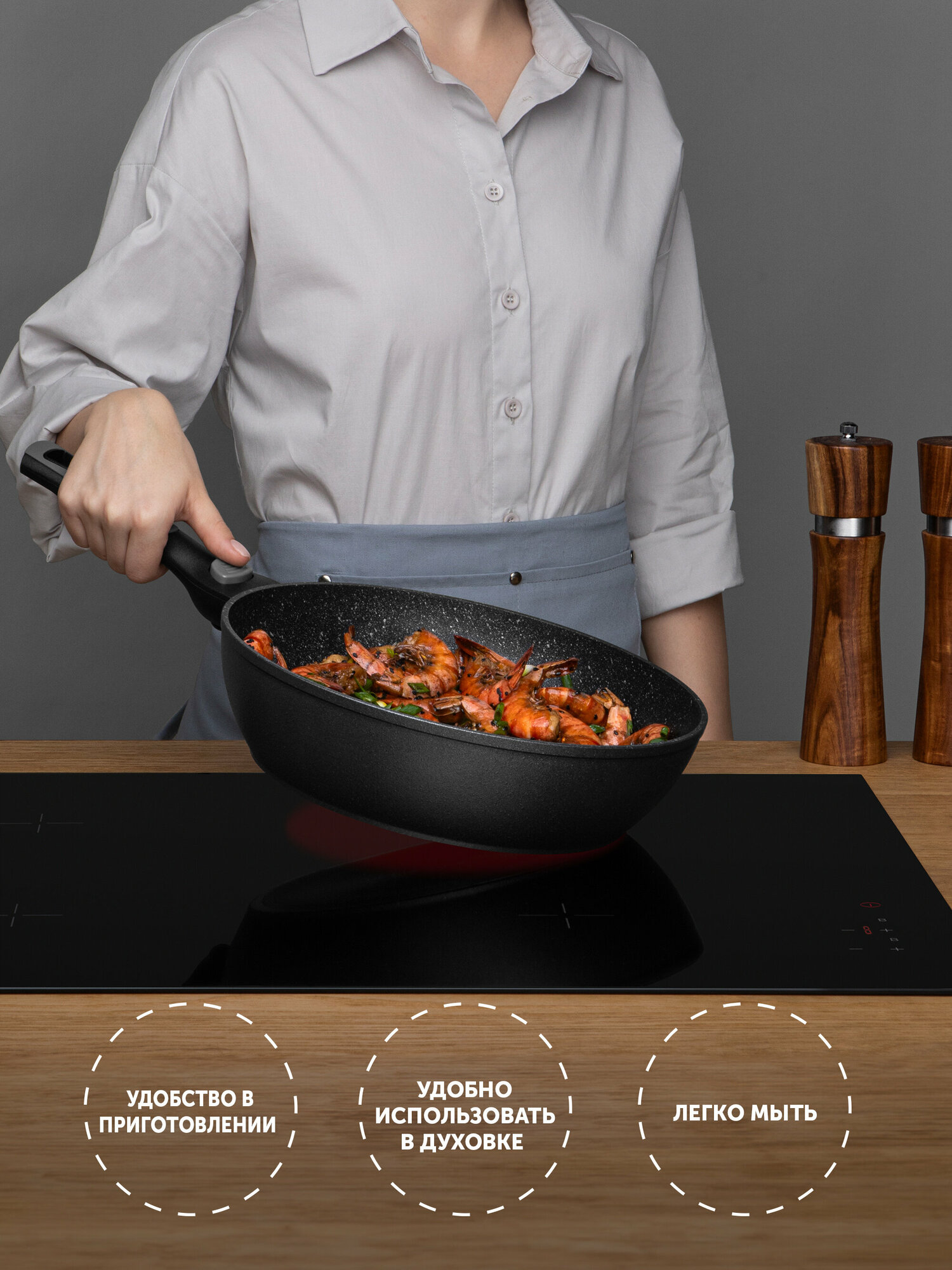 Сковорода Polaris Graphit-28F без крышки с антипригарным покрытием для индукции плиты 28 см