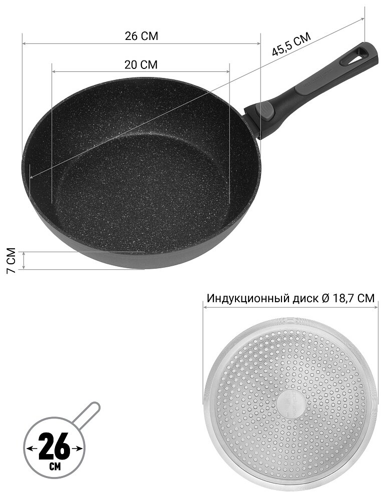 | Дополнительная информация | материал ручки: бакелит с силиконовым покрытием; 3-х слойное антипригарное покрытие с добавлением мраморной крошки MARBLE+ |
