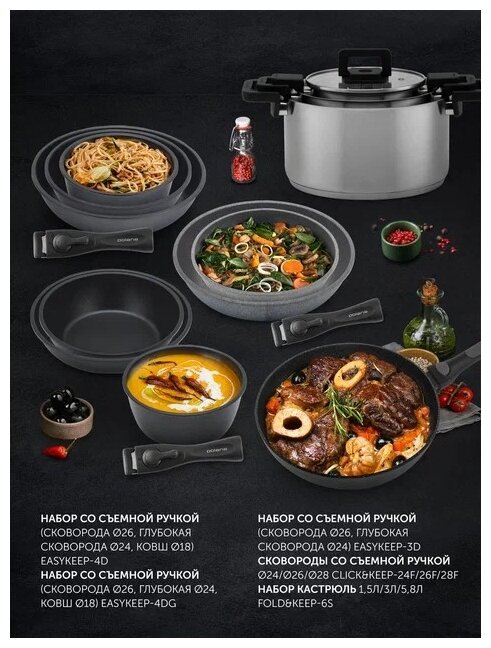 Сковорода POLARIS Click&Keep-26F со съемной ручкой