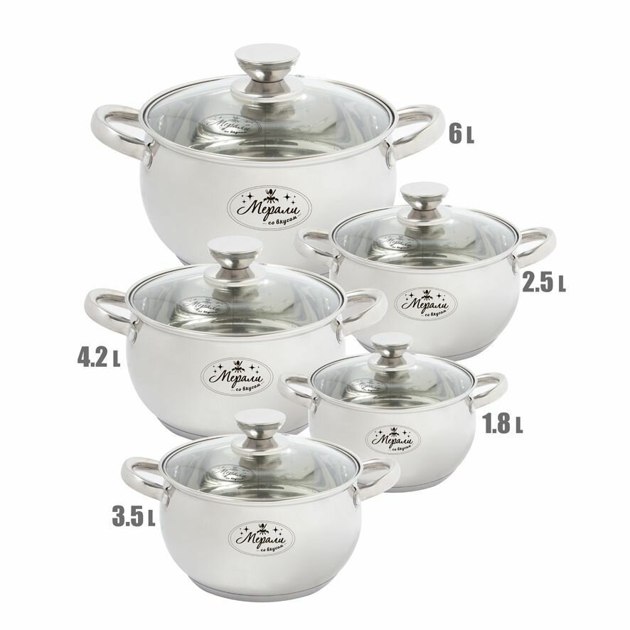 СохранитьКастрюля 3,5 л из нержавеющей стали со стеклянной крышкой Мерали для всех видов плит интересное: