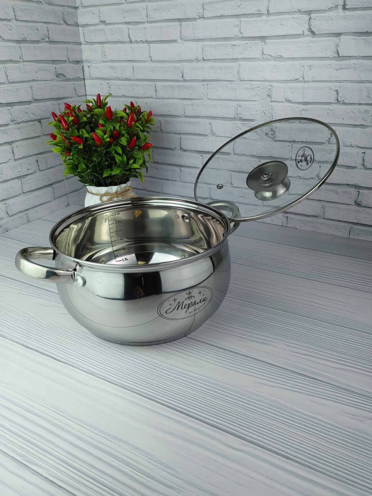 Купить Кастрюля 3,5 л из нержавеющей стали со стеклянной крышкой Мерали для всех видов плит