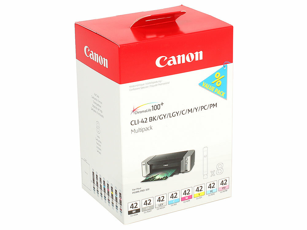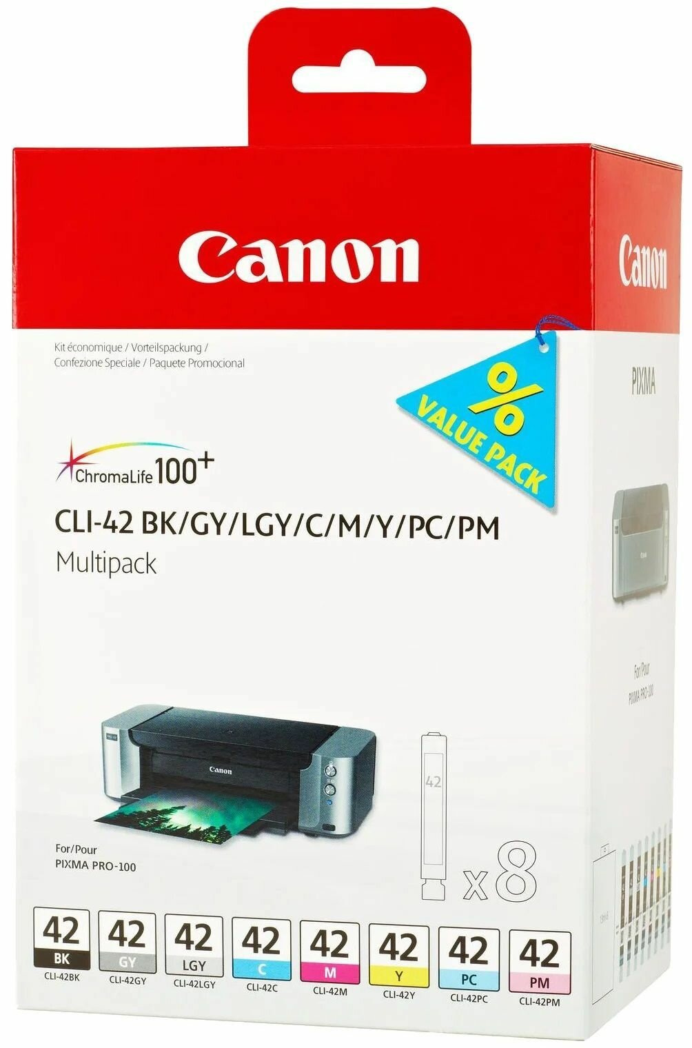 Комплект оригинальных картриджей Canon CLI-42BK, CLI-42C (голубой), CLI-42GY (серый), CLI-42LGY (светло-серый), CLI-42M (пурпурный), CLI-42PC (фото-голубой), CLI-42PM (фото-пурпурный), CLI-42Y (желтый)
