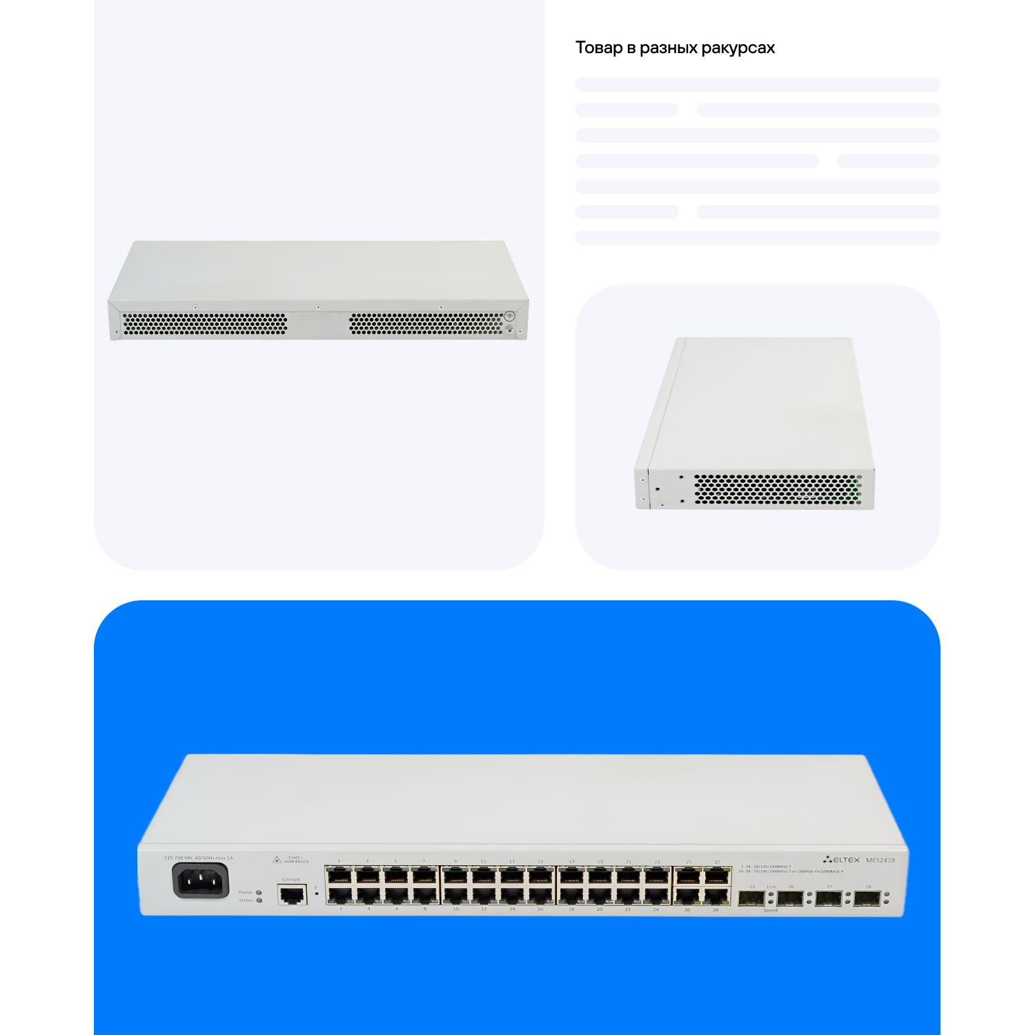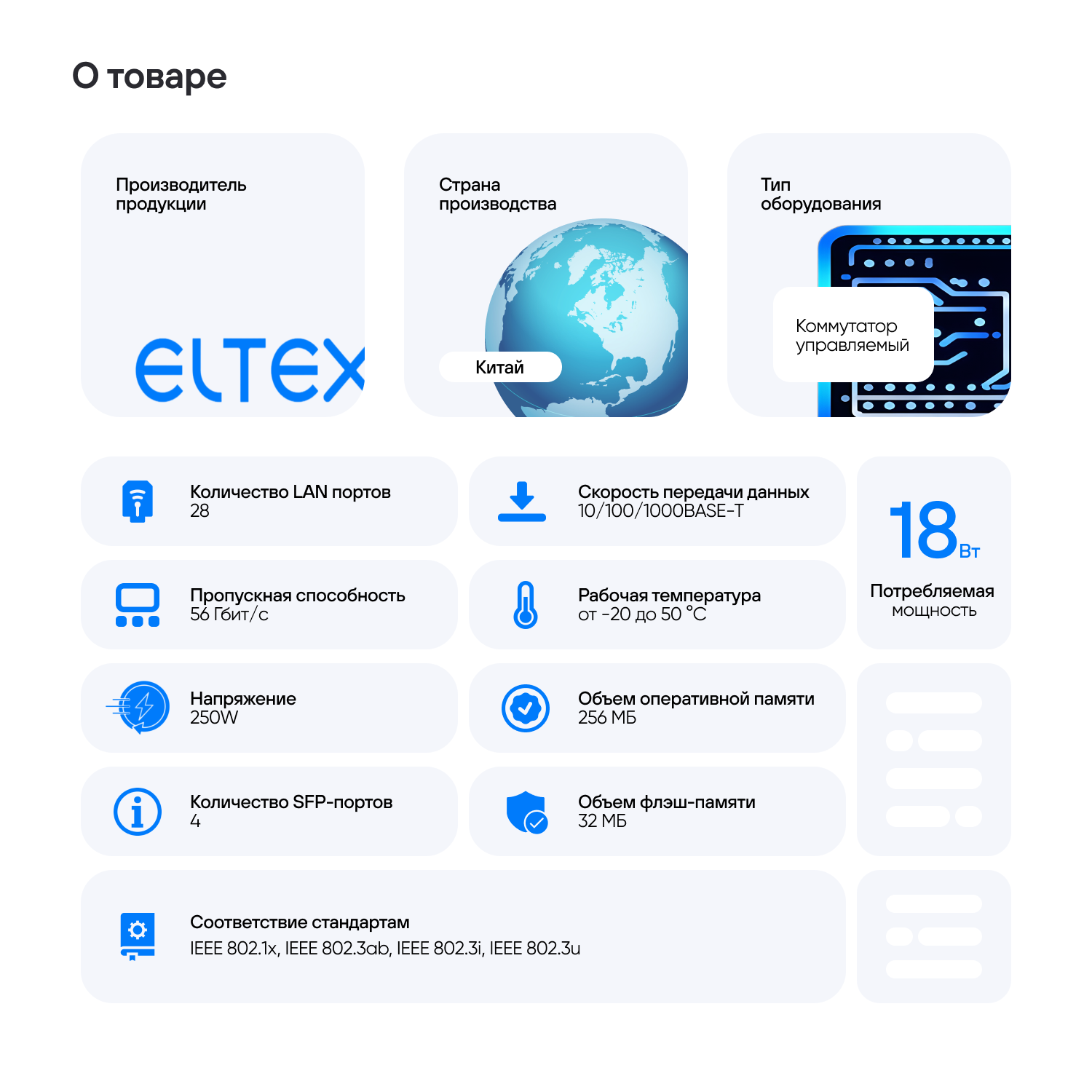 | Дополнительная информация | 4 комбо-порта RJ45/SFP; питание 220В AC |