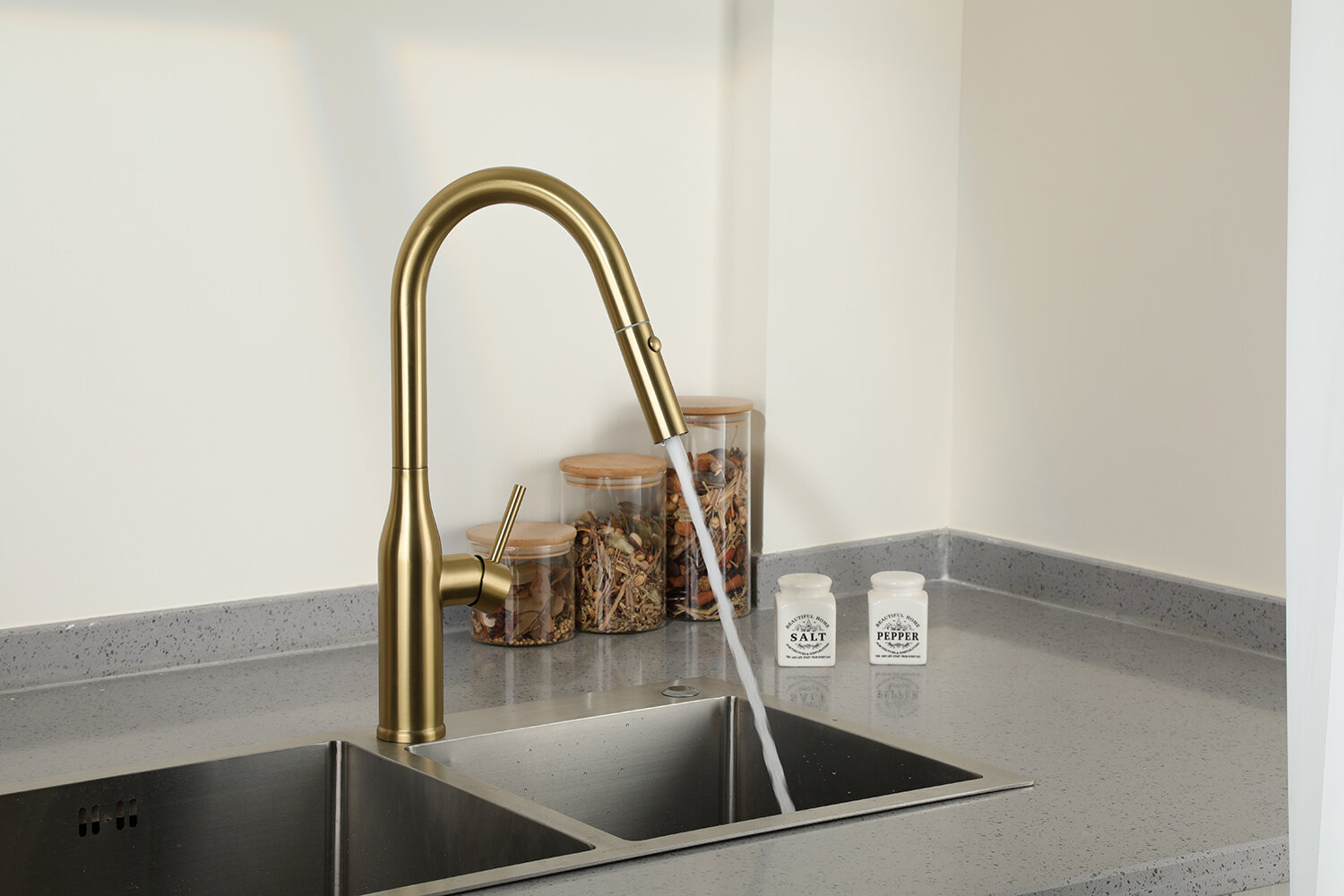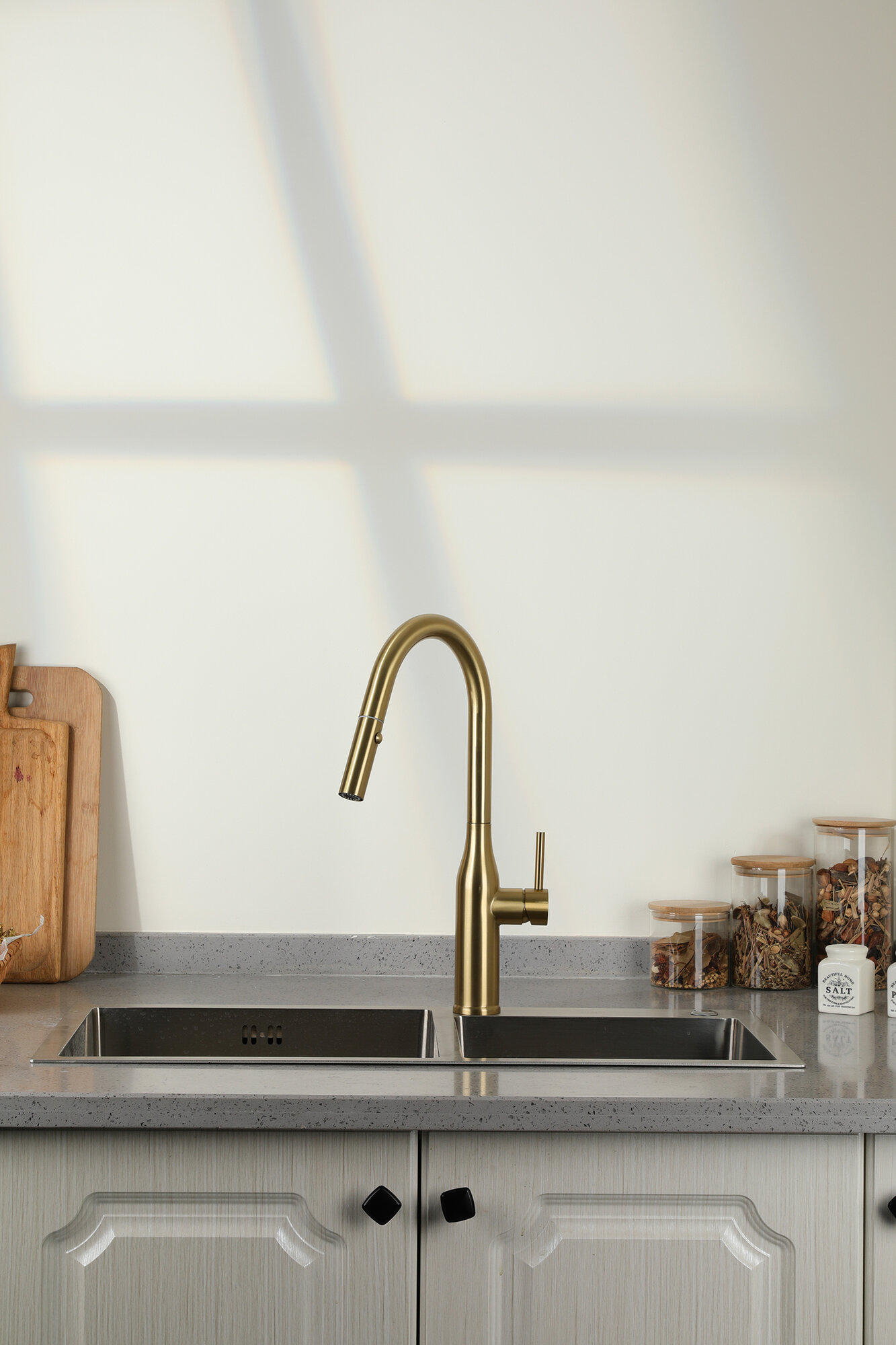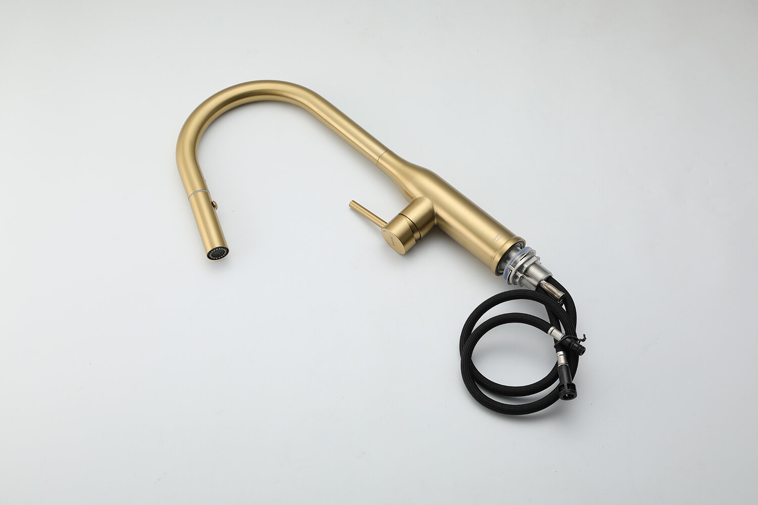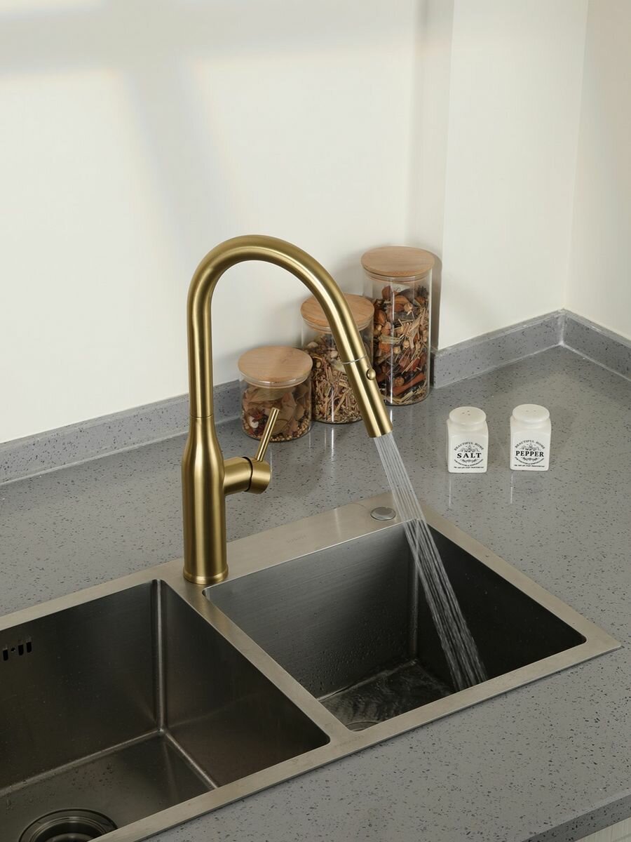 Смеситель для кухни, с выдвижным изливом Gappo G4398-43 сатин золотой