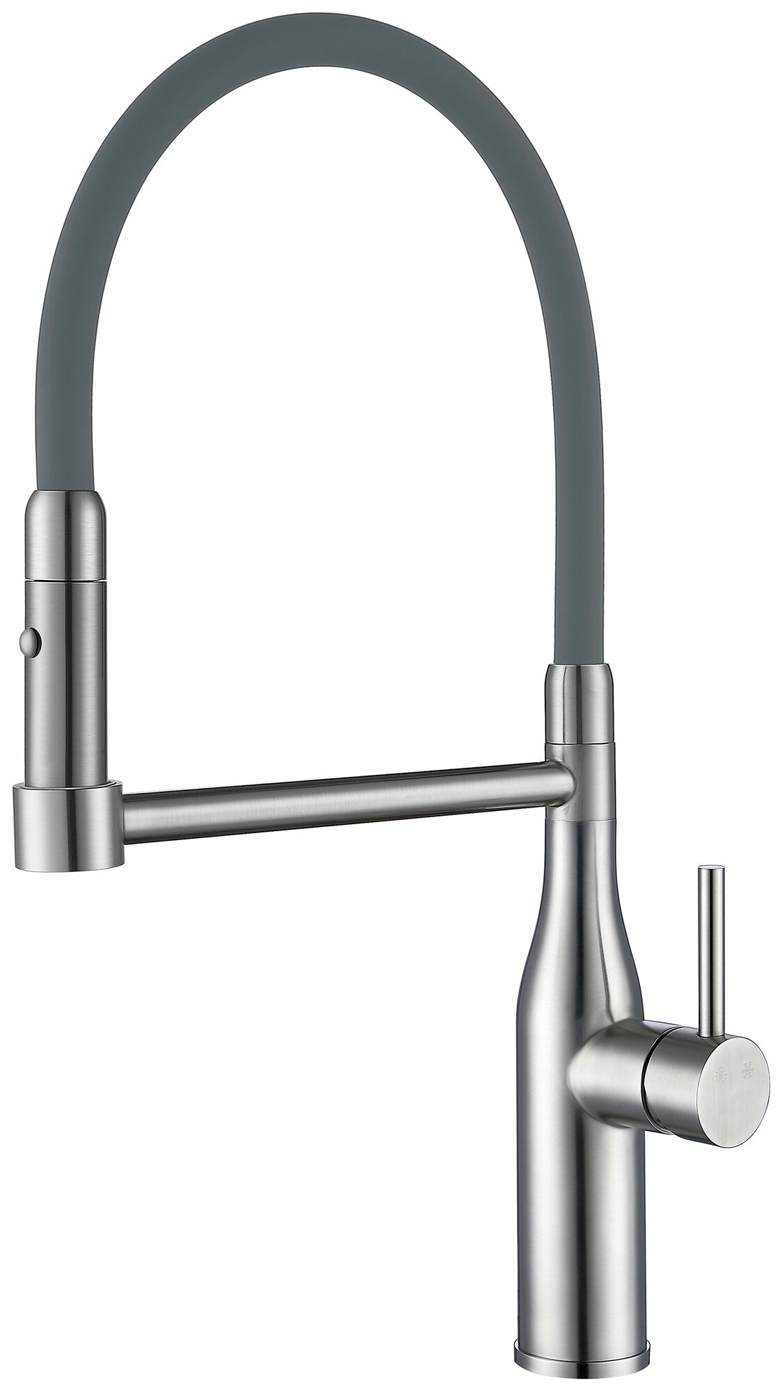 Смеситель для кухни Gappo G4398-55, гибкий излив, однорычажный, серый/сатин