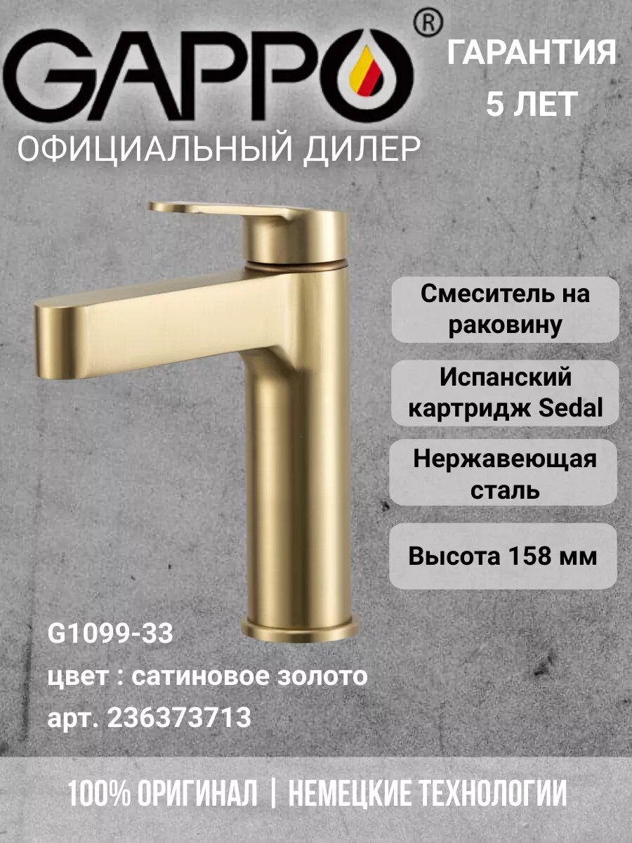 Смеситель для раковины Gappo G1099-33 золотой сатин