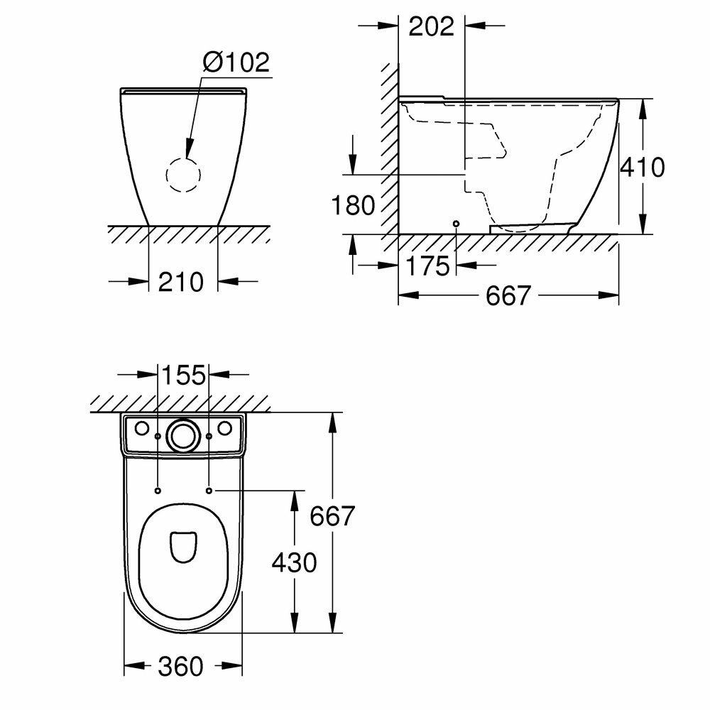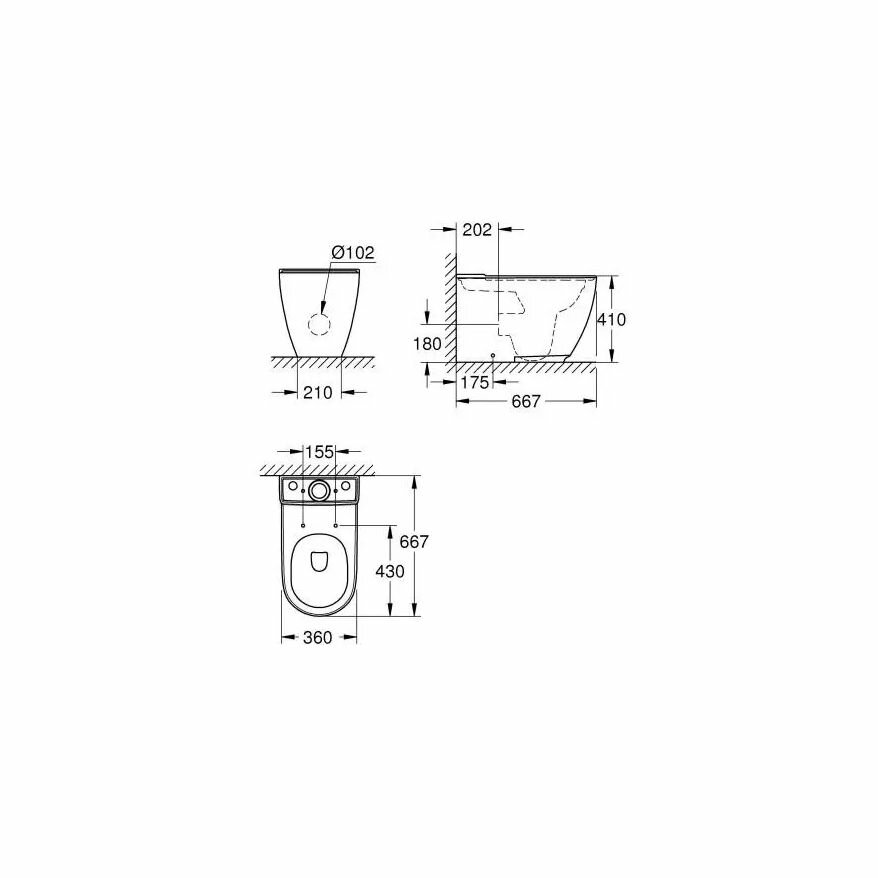 Унитаз напольный GROHE Essence Ceramic, для комбинации с бачком наружного монтажа, альпин-белый (3957200H)