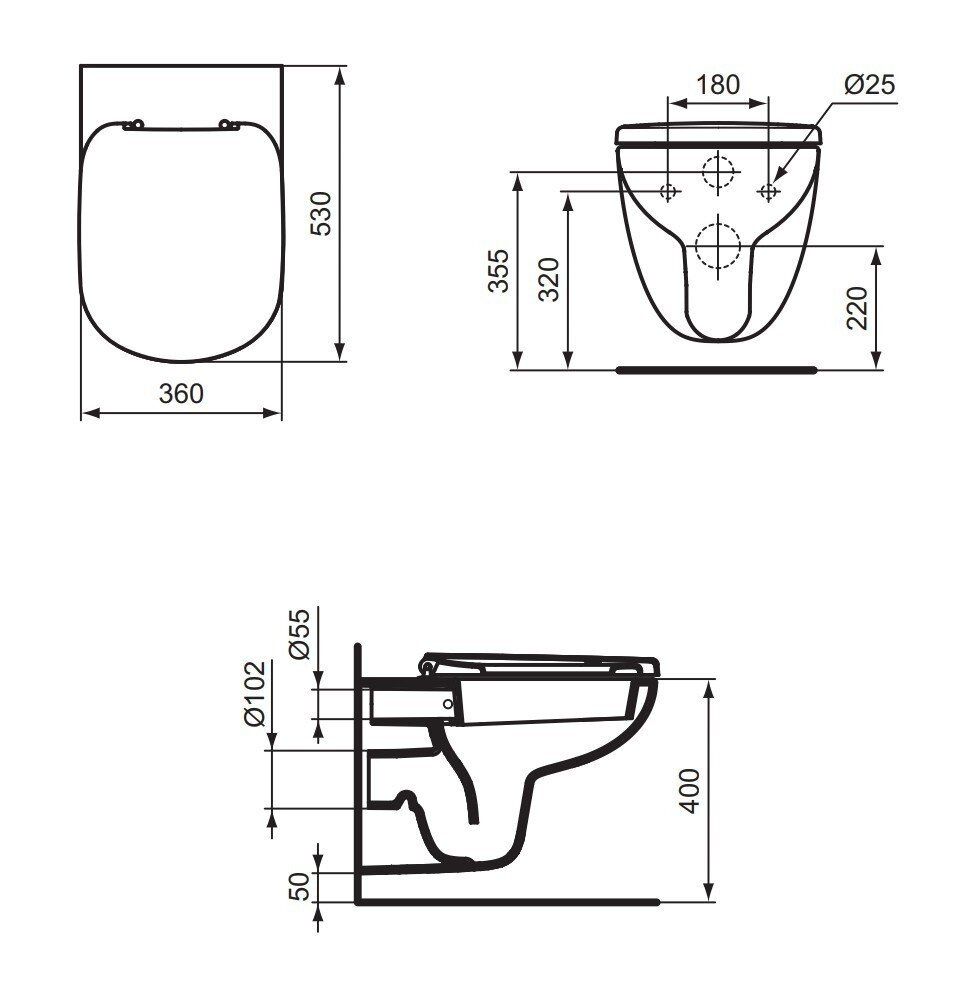Чаша унитаза подвесная Ideal STANDARD Tempo T331101 с горизонтальным выпуском