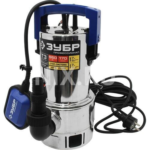 Дренажный насос для грязной воды ЗУБР, корпус - нерж. сталь, 550 Вт, Профессионал