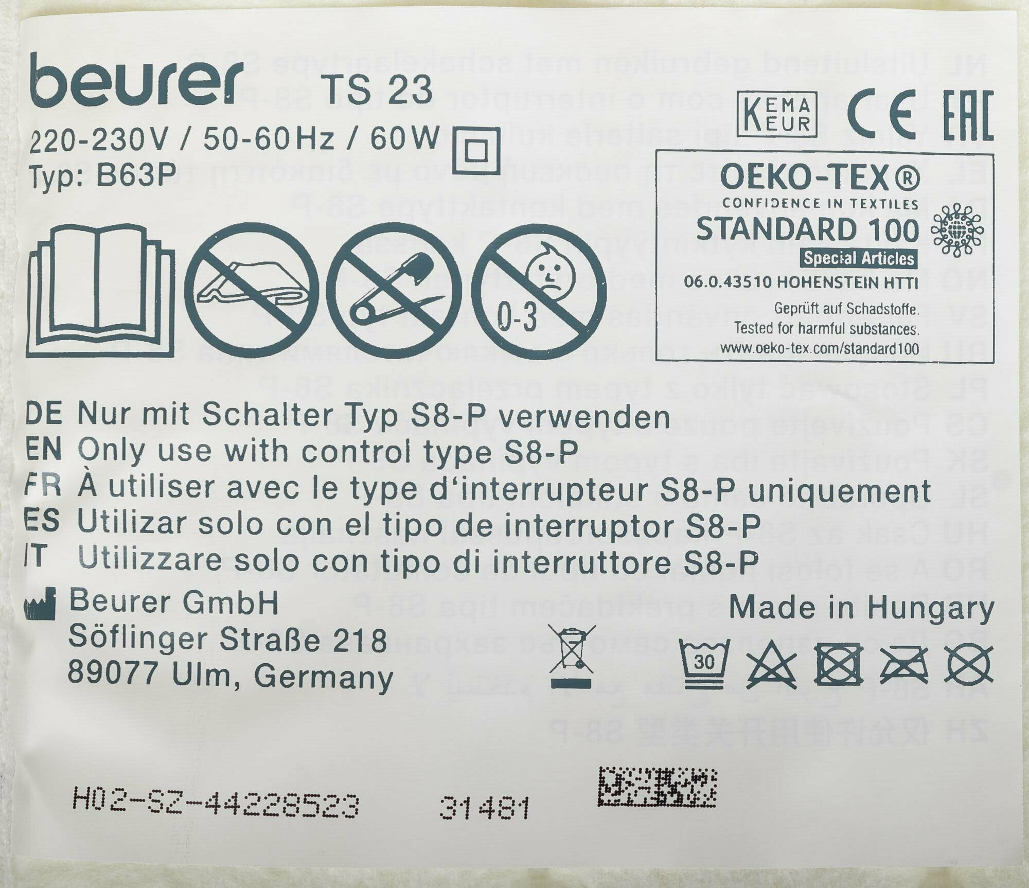 Электрическая простыня Beurer TS23 60Вт (314.81)