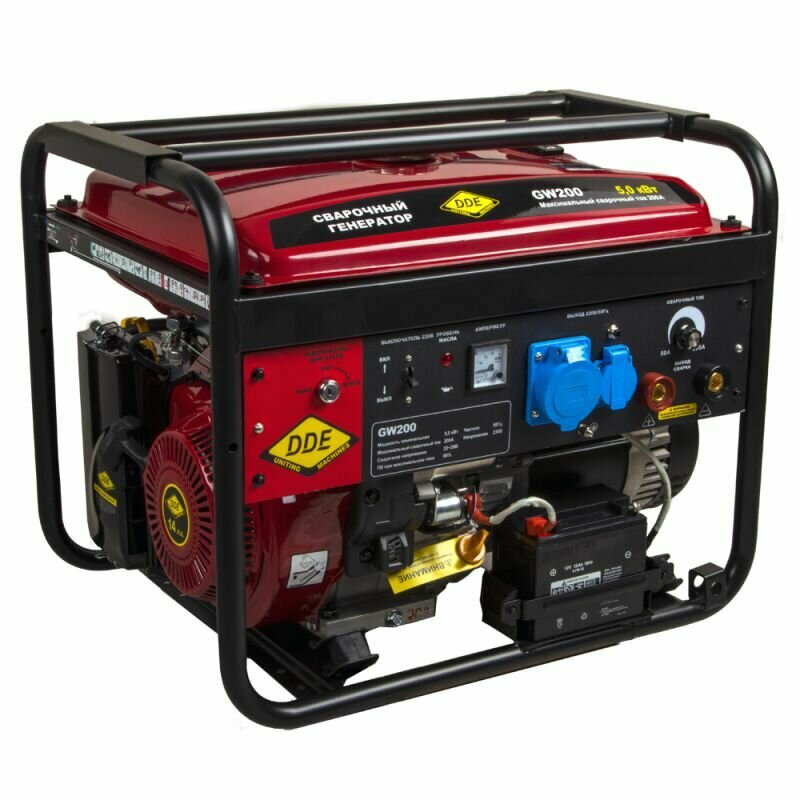 Генератор сварочный DDE GW200 (ток 50-200 А 1ф 5,0/5,5 кВт 98 кг дв-ль 14 л.с. элстарт)