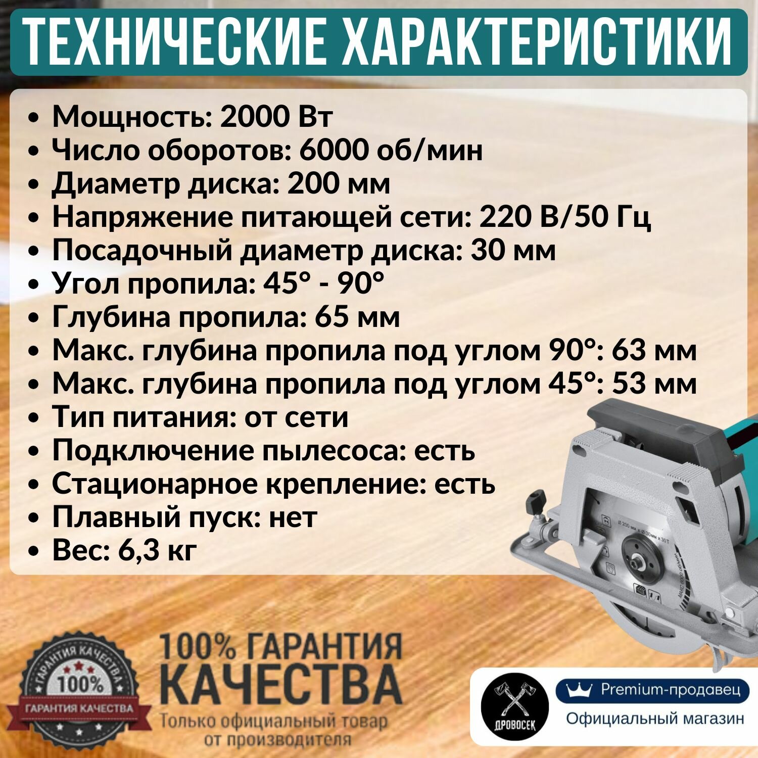 Дисковая пила Варяг ДП-200/2000С, 2000 Вт