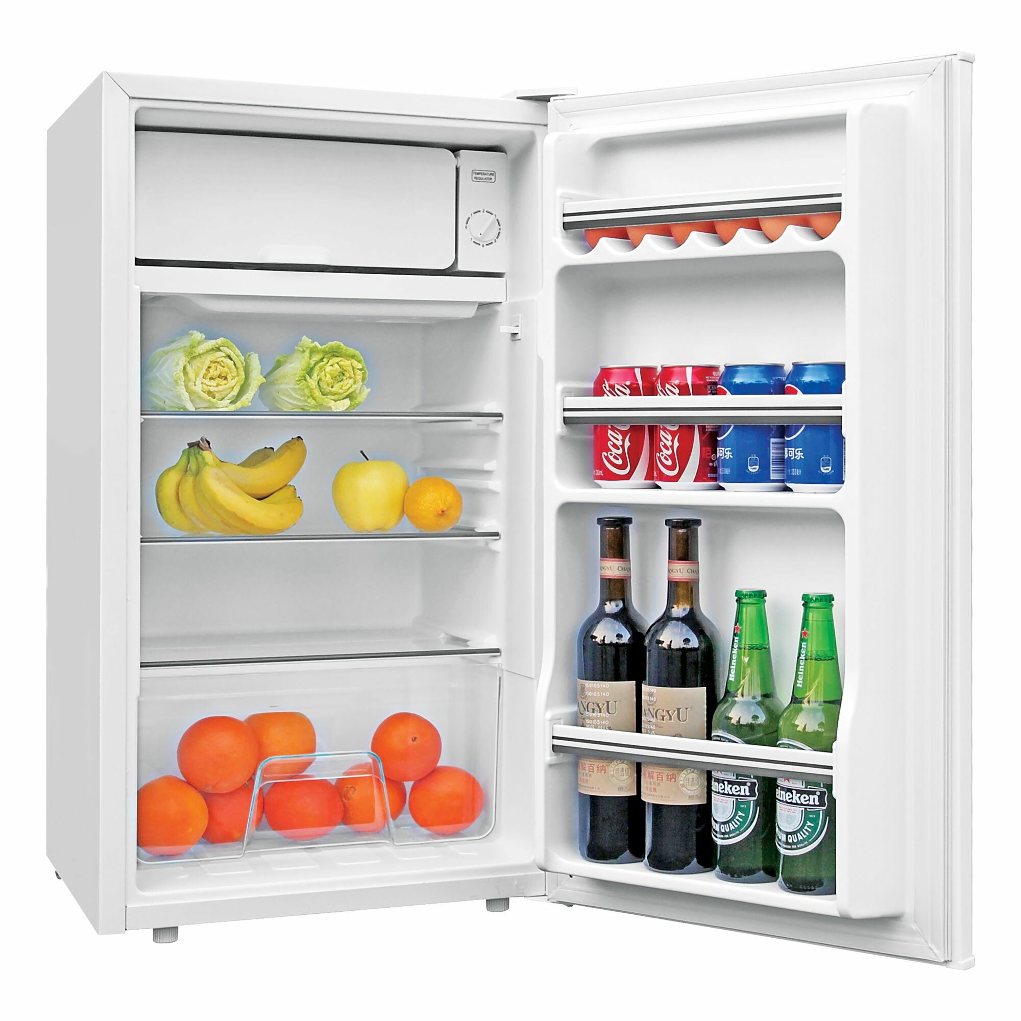 | Отзыв: | 3 полки регулируются по высоте. Ширина 44, 5 см, высота 83 см, при этом вмещает в себя достаточный запас продуктов. 90 л общий объем. Есть форма для льда, отсек на двери для яиц и контейнер для овощей, почти не шумит. Морозилка небольшая на 8 л.