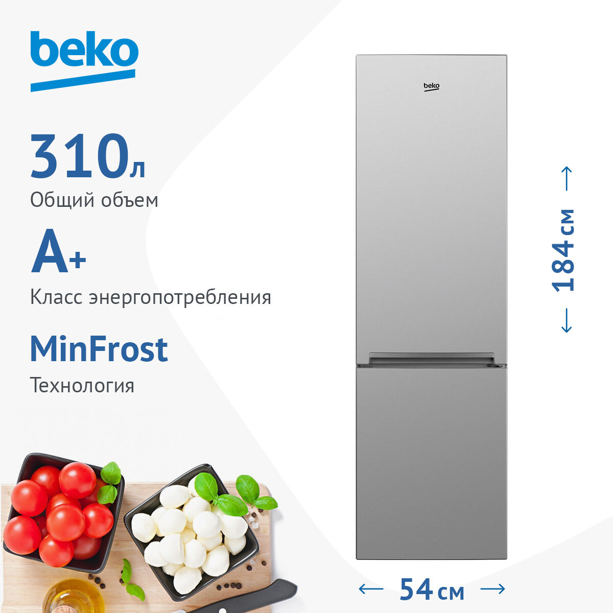 Холодильник Beko CSMV5310MC0S, двухкамерный, класс А+, 300 л, серебристый