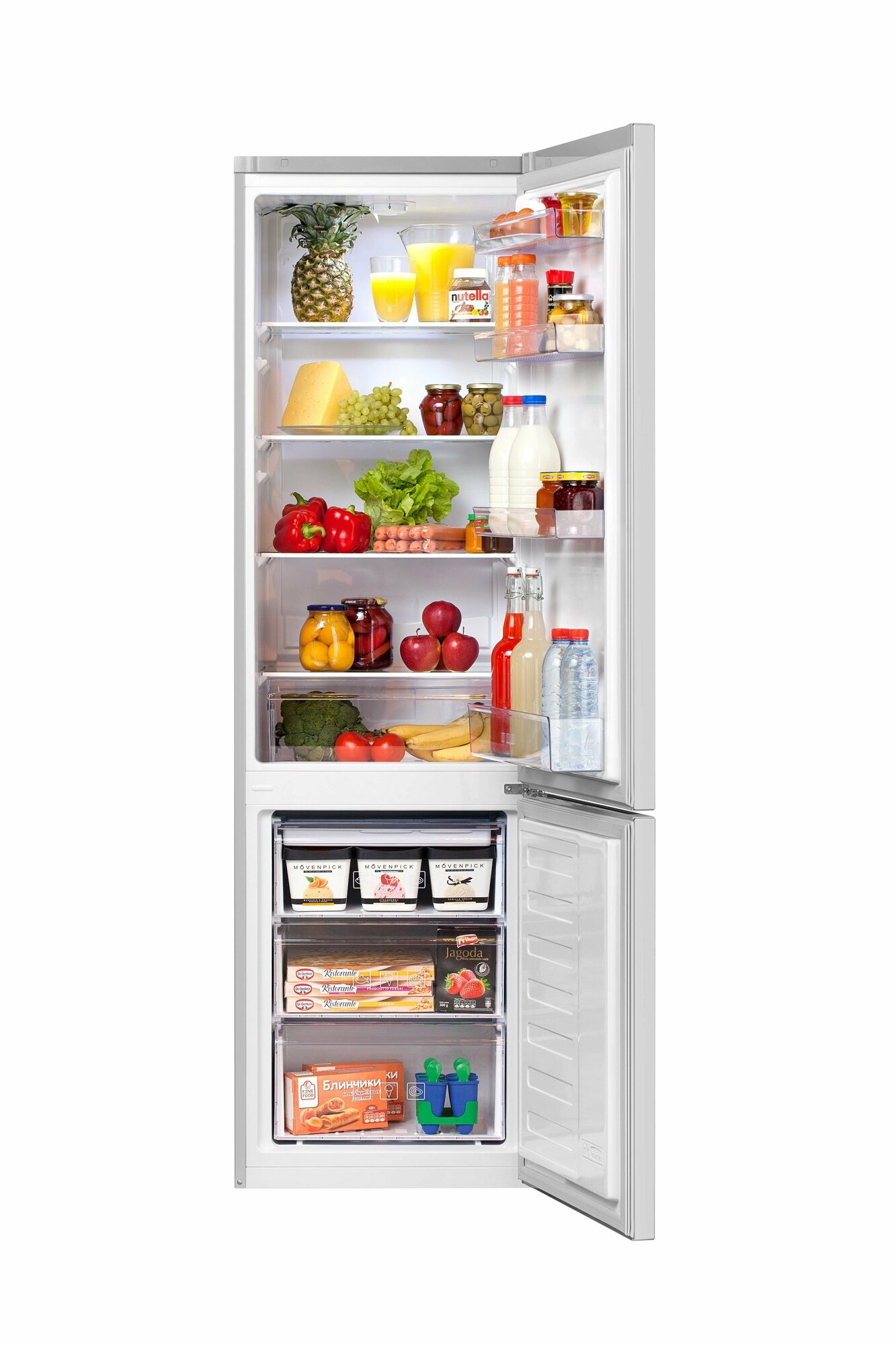 В морозильнике три больших ящика, специальный поддон для заморозки ягод, пельменей, вареников или ещё чего, есть также форма для льда. Холодильник ещё и энергоэффективен, класс A+. |