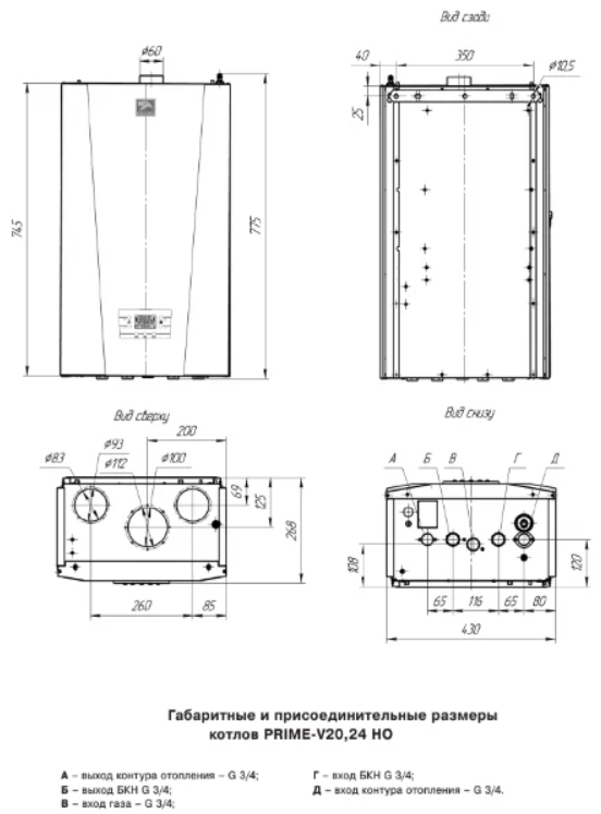 | Диаметр коаксиального дымохода | 60/100 мм |