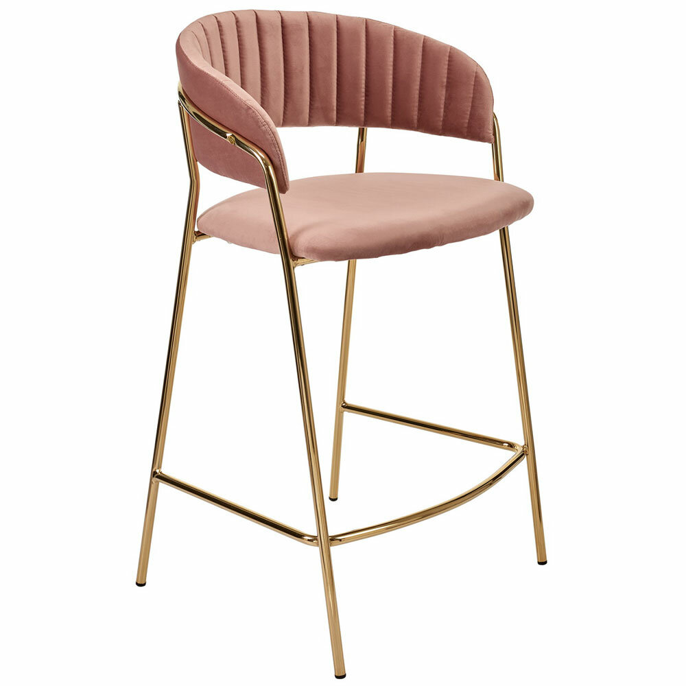 Купить Стулья для кухни 2 шт полубарные мягкие со спинкой велюр Turin пудровый розовый с золотыми ножками