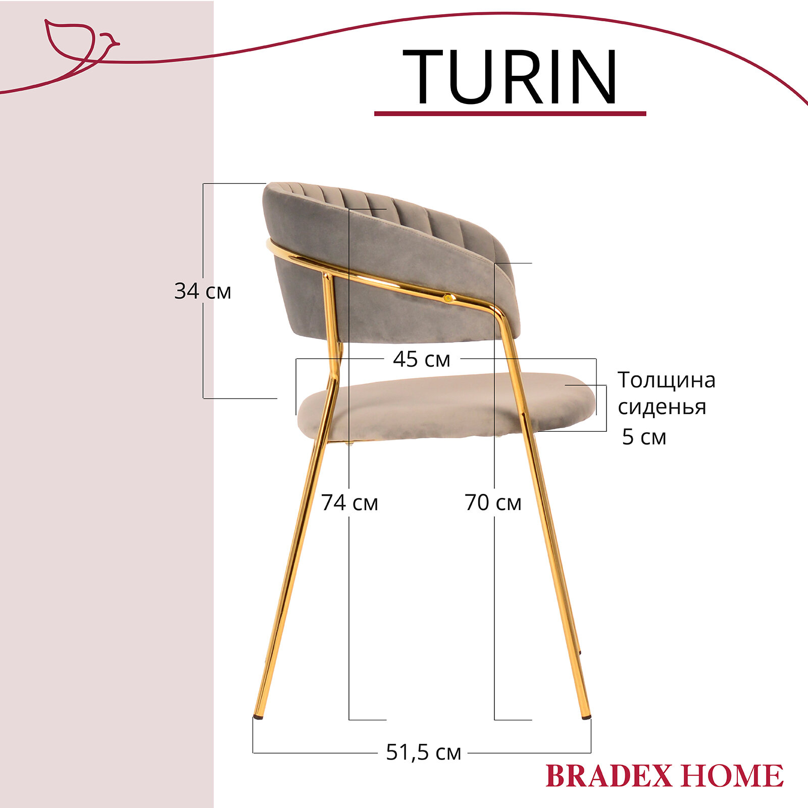 Стул полубарный Bradex Home Turin серый с золотыми ножками