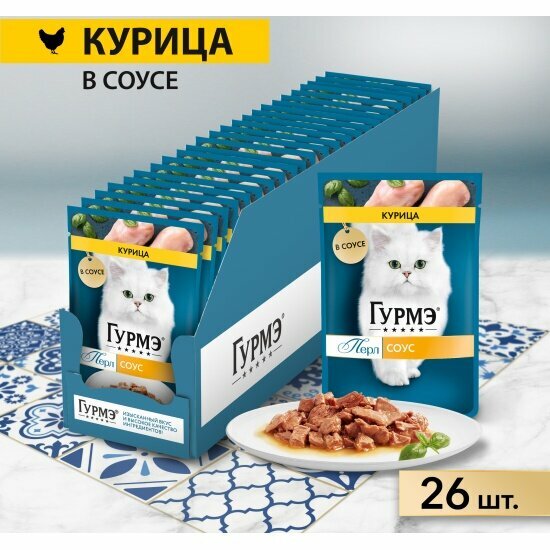 (26 ШТ.) 75 гр., Гурмэ, Влажный корм (пауч), для взрослых кошек, Перл Нежное филе, "с курицей в соусе"