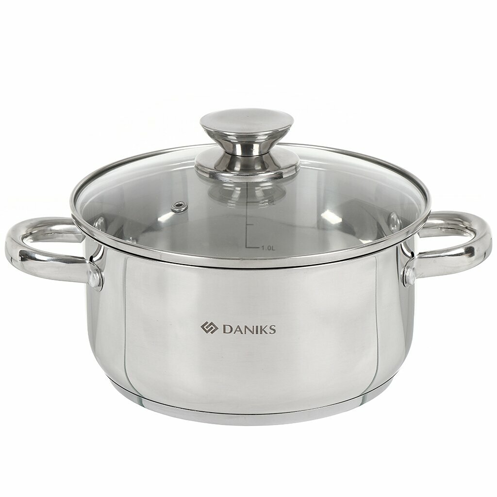 СохранитьНабор посуды нержавеющая сталь, 10 предметов, кастрюли 1.5, 2.2, 3.1, 5.4 л, ковш 1.5 л, индукция, Daniks, Оптима интересное: