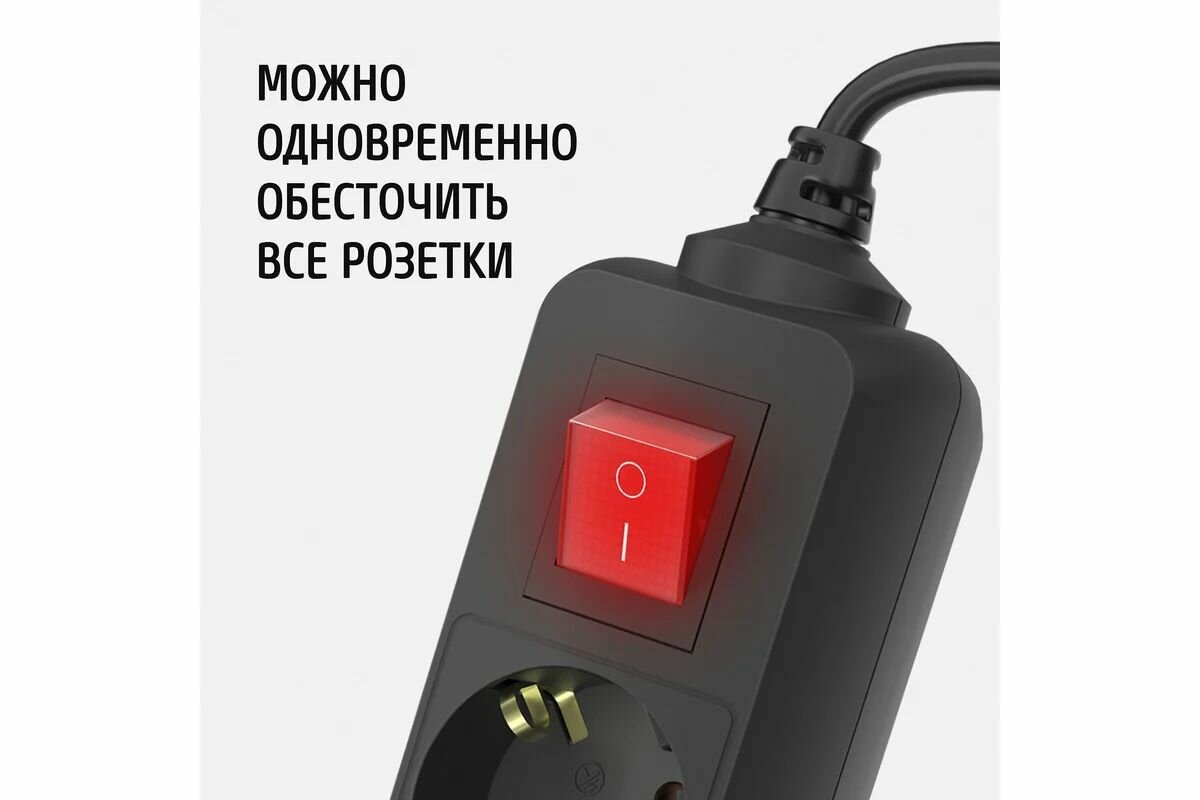 Удлинитель сетевой для розетки фотон 16А 2 метра 3 розетки с выключателем с заземлением черный, ГОСТ