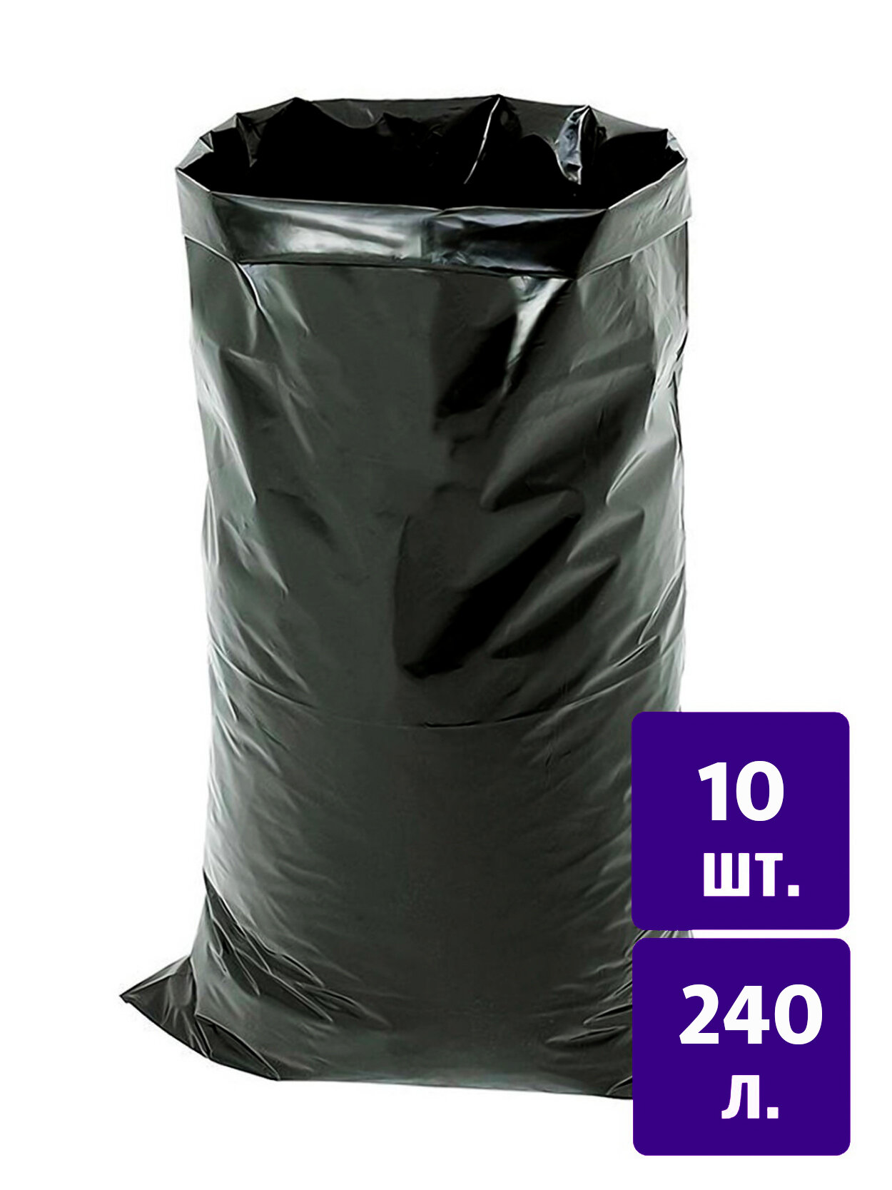 Мешки для мусора 1-2 Pro черные прочные, 240 л, 65 мкм, ПВД, 90х130 см, 10 шт (ММВ24065-10)