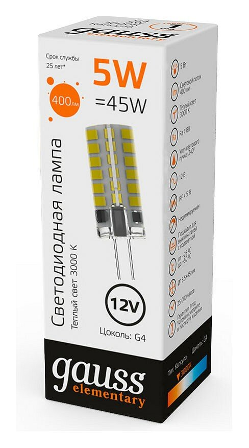 Gauss Лампа elementary g4 12v 3w 250lm 3000k силикон led 1/20/200 18713 интересное: