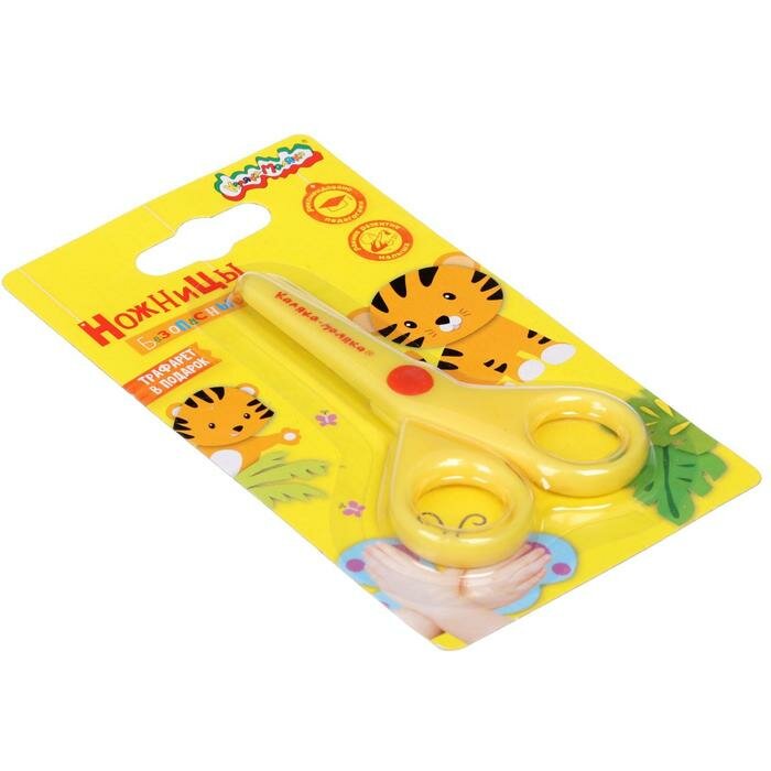 Ножницы детские для малышей канцелярские Каляка-Маляка маленькие пластиковые безопасные желтые