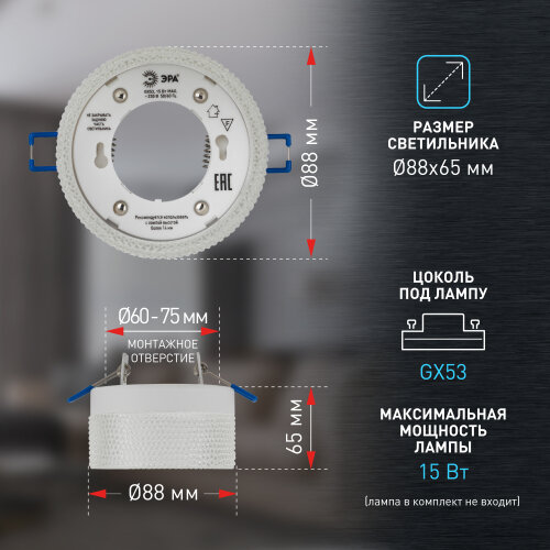 СохранитьВстраиваемый светильник под лампу GX53 ЭРА DK97 WH/TR белый прозрачный интересное: