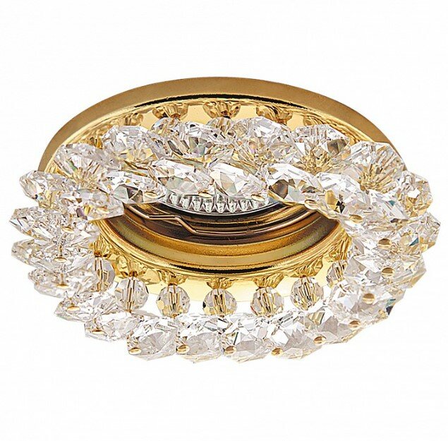 Ecola Светильник встраиваемый GU5.3 Золотой MR16 CD4141 хрусталики прозрачные 90х50 (FD1618EFY) потолочный, 65мм врезка