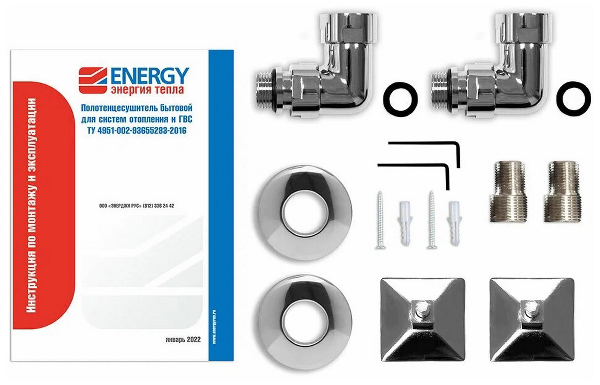 | Дополнительная информация | комплектация: кронштейны (2 шт.), угольники 1" н.р. - 3/4" н.г. (2 шт.), декоративные чашечки-отражатели (2 шт.), эксцентрики 3/4" - 1/2" (2 шт.), уплотнительные прокладки (8 шт.), дюбели (2 шт.), шурупы (2 шт.), краны Маевского (2 шт.), инструкция |