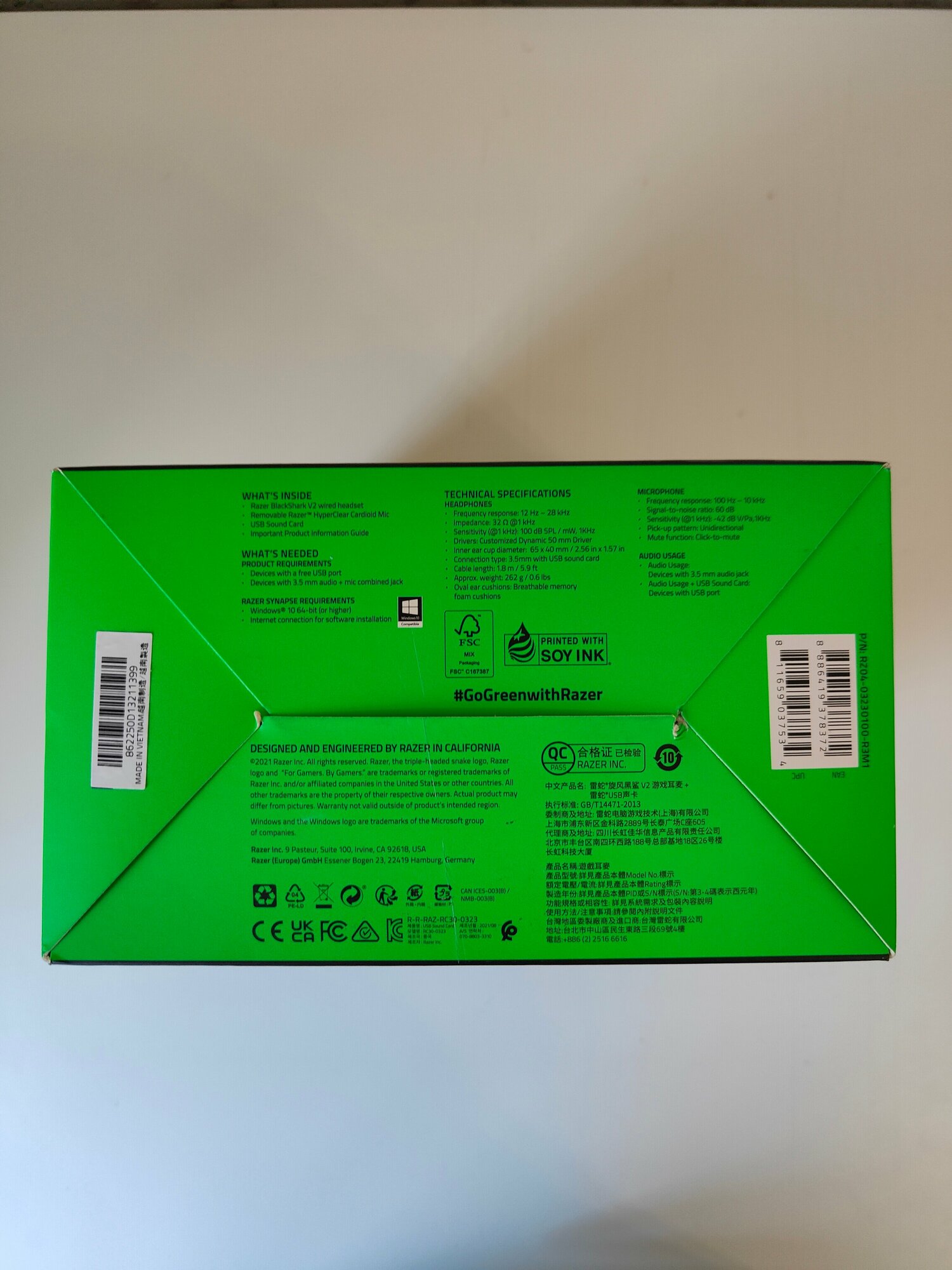 Игровая гарнитура Razer "Blackshark V2", с микрофоном, проводная, полноразмерная, зеленая