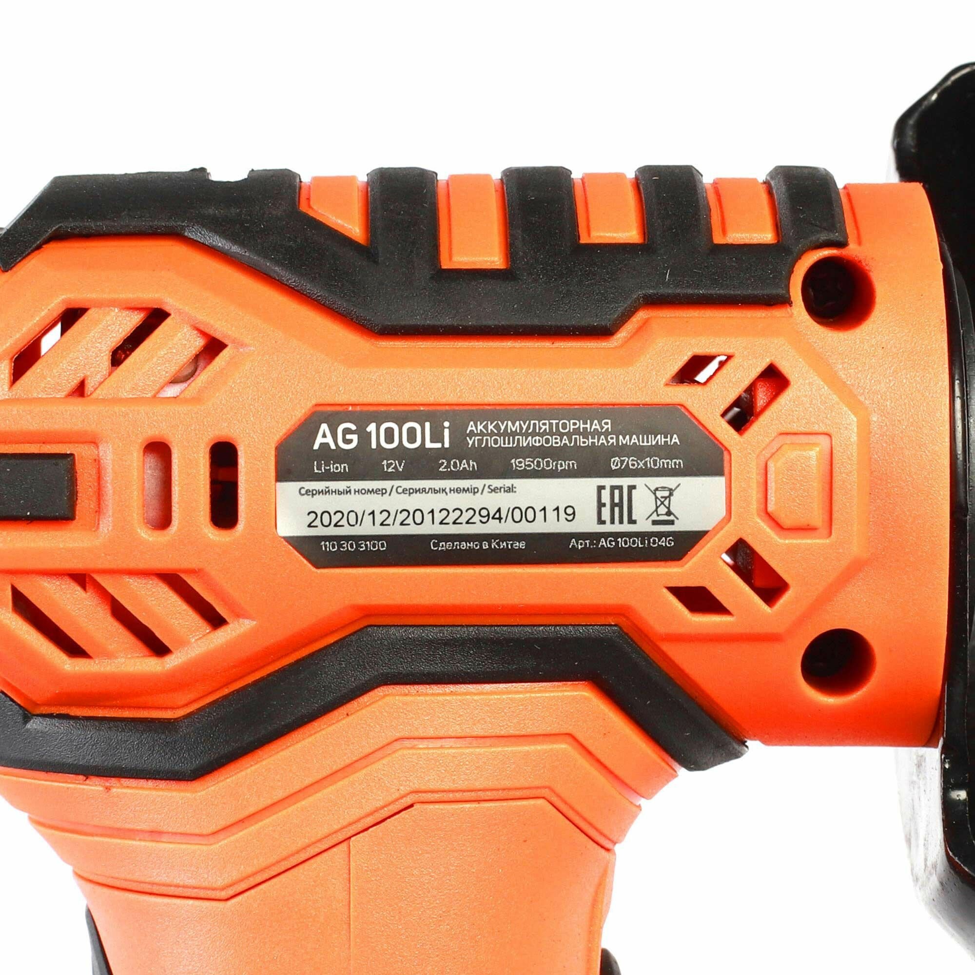 Купить Машина углошлифовальная аккумуляторная (УШМ) PATRIOT AG 100Li, 12В, 2Ач, диаметр диска 76 мм