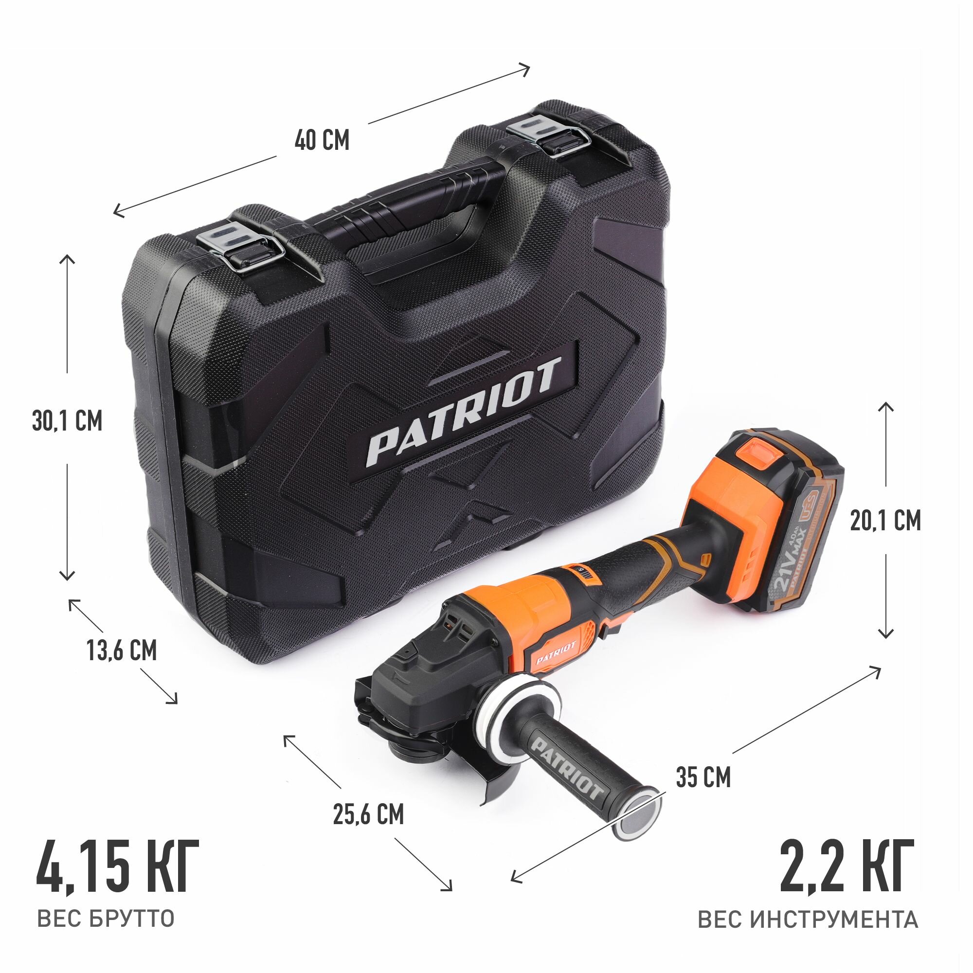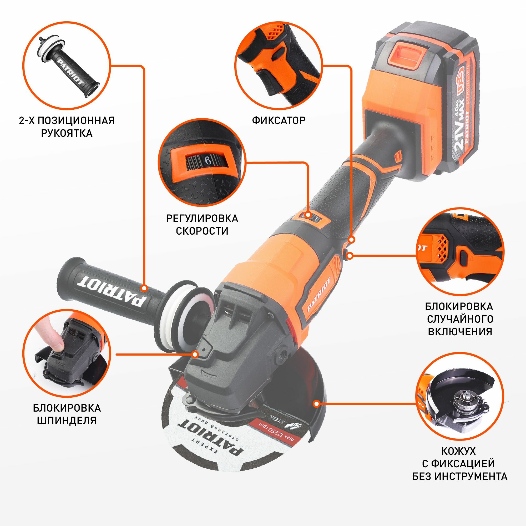 Углошлифовальная машина PATRIOT AG 125Li UES 110303127 / li-ion аккумулятор 4 А*ч